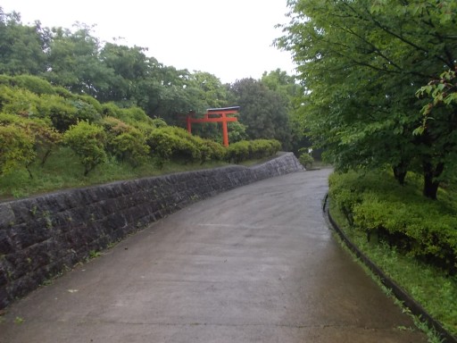| 進行方向、右側にベンチが置かれた休憩コーナーがあるが、休憩するほど歩いていないので通過。 また、雨傘を差して休憩するのもサマにならない。なんだか変な感じ-笑。