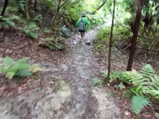 | この後、撮影は出来なかったが、荒れた道が続いた。 足元がぬかるんでおり、倒木や生い茂った下草に行く手を阻まれ難儀した。