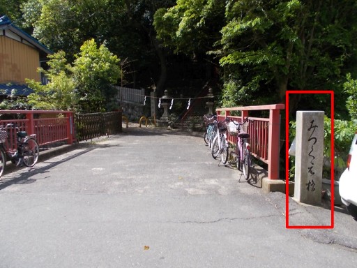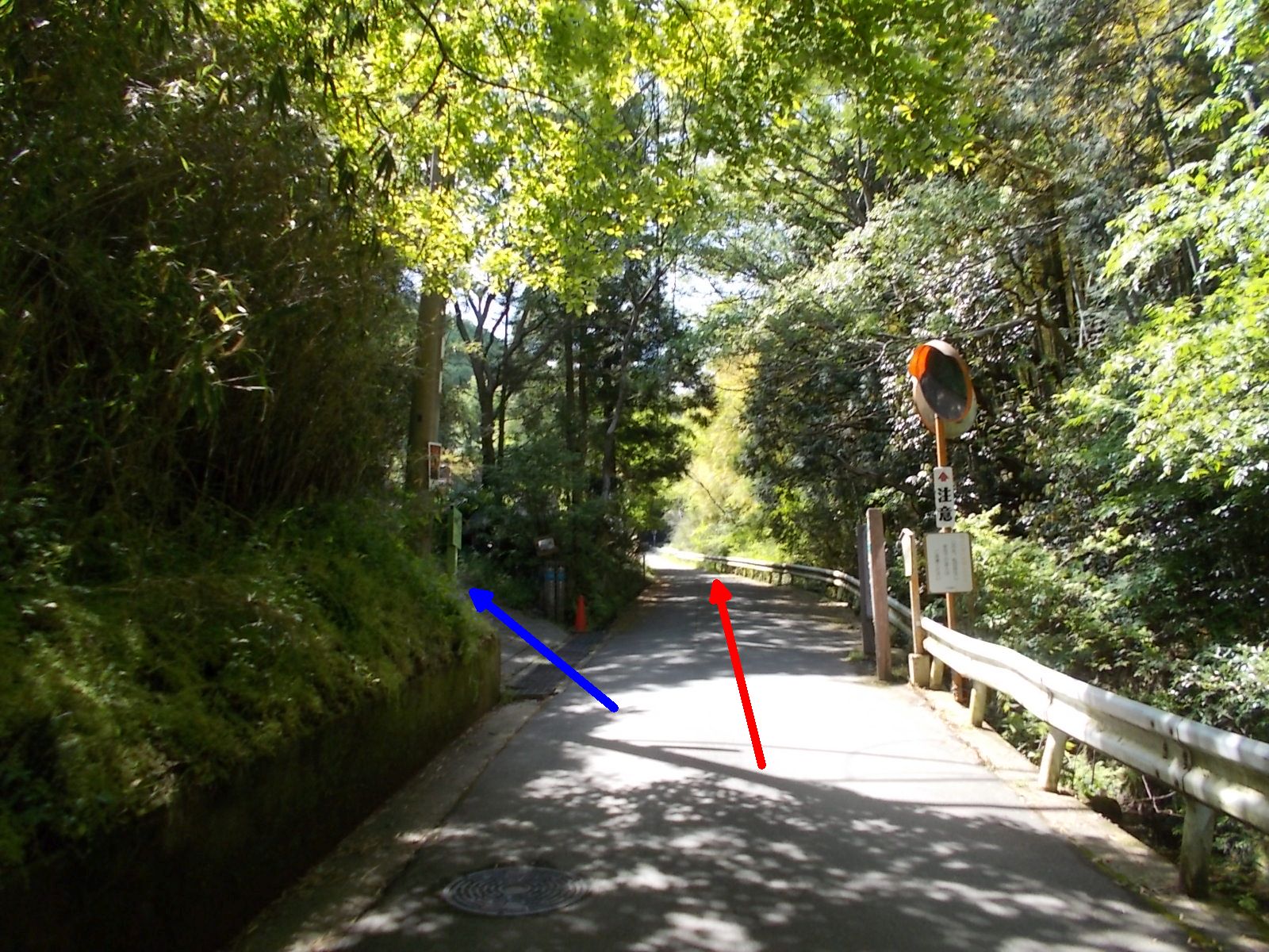 | 右方向、権現川に架かる「みつくえ橋」を渡らずに直進。
