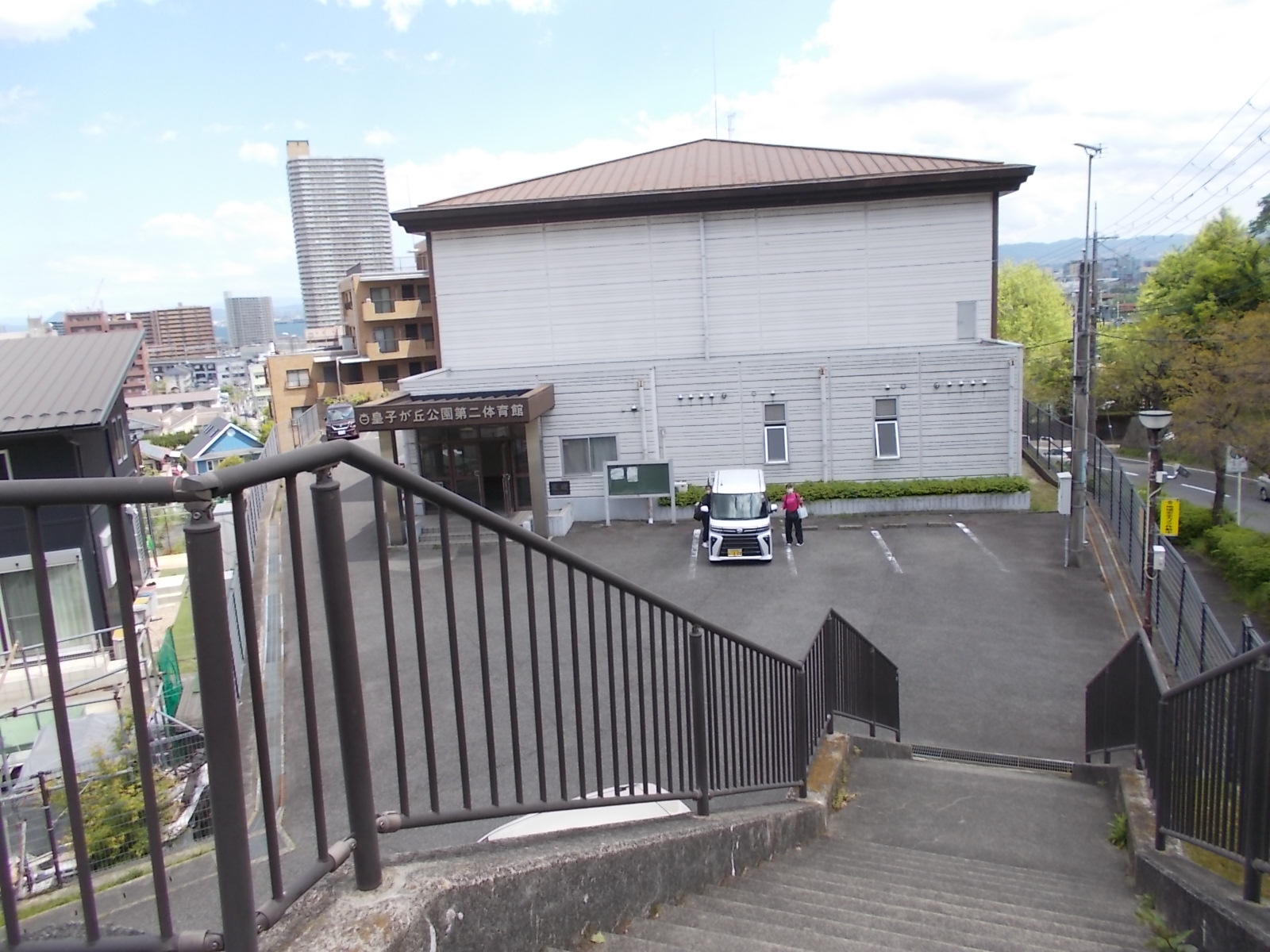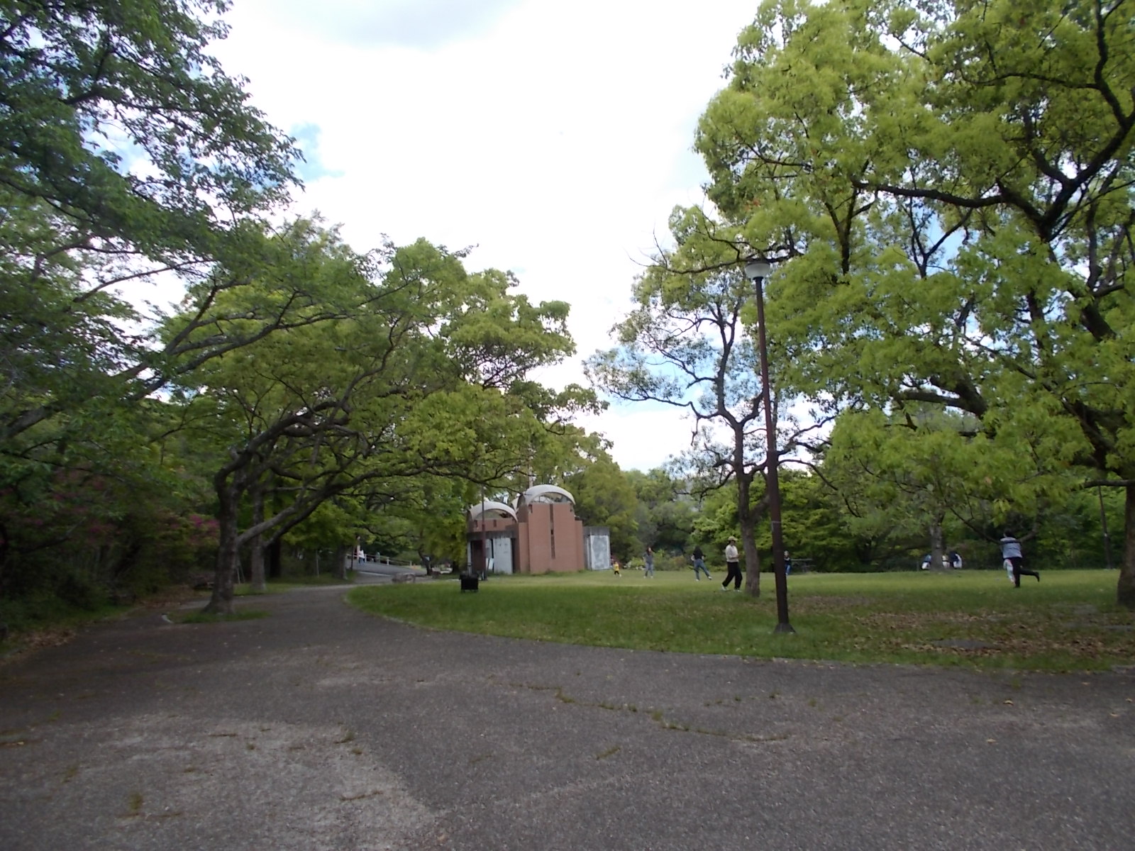 | 皇子が丘公園に入る。 中央、茶色の建物がトイレ。