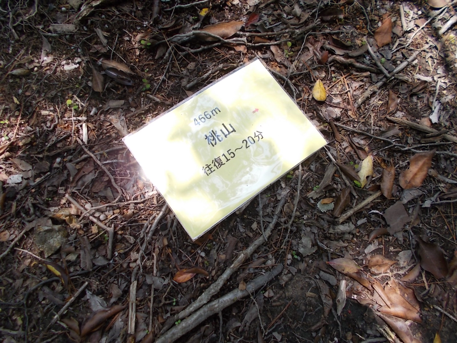 桃山をピストンする案内板。 それによると、ここから往復15~20分と表示。