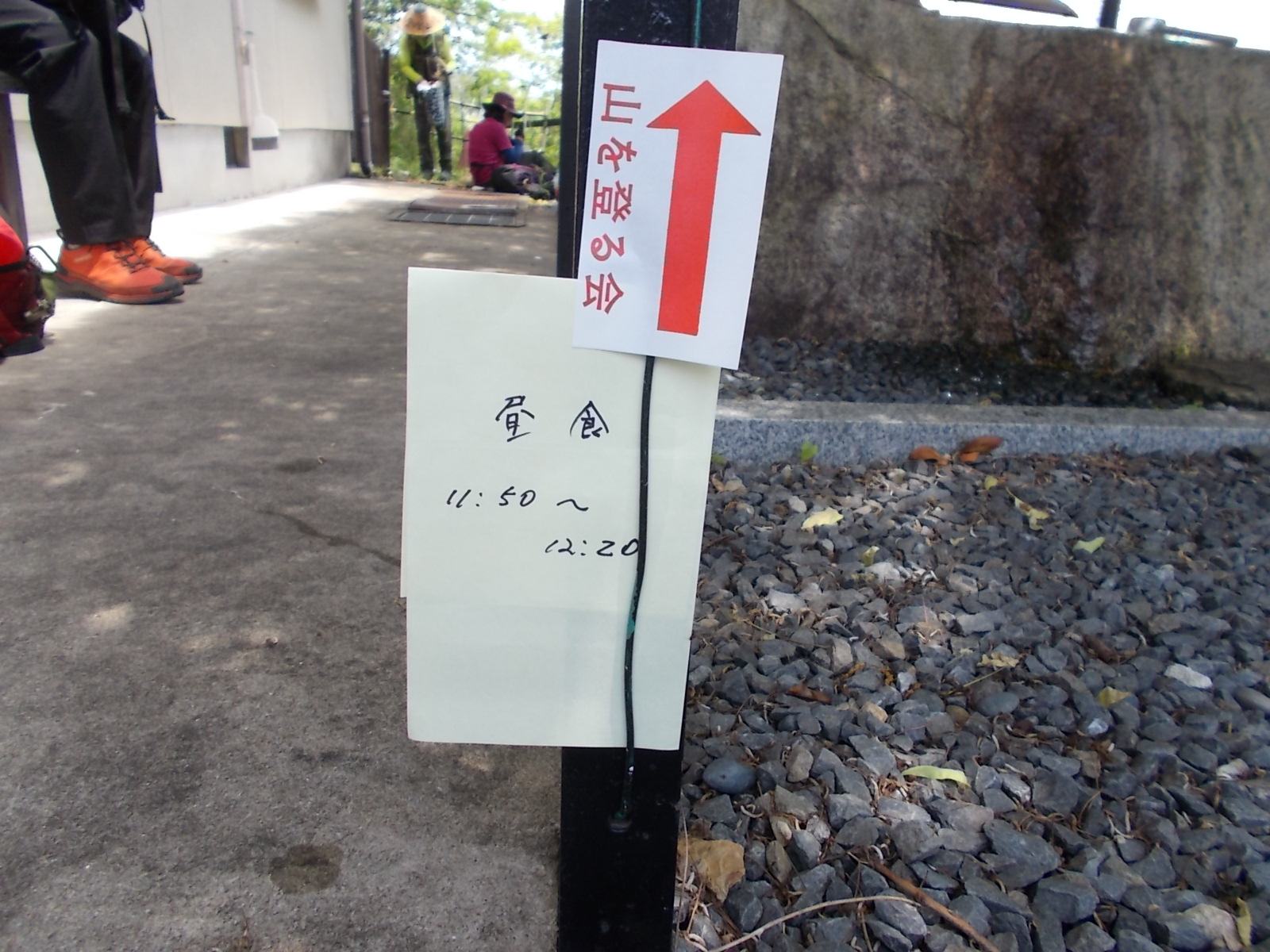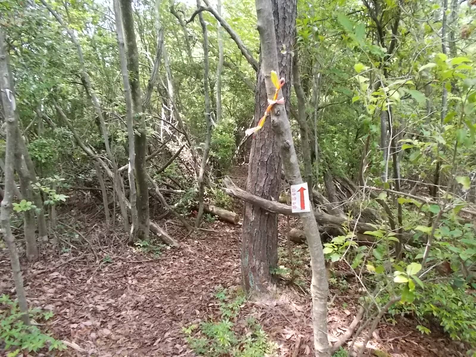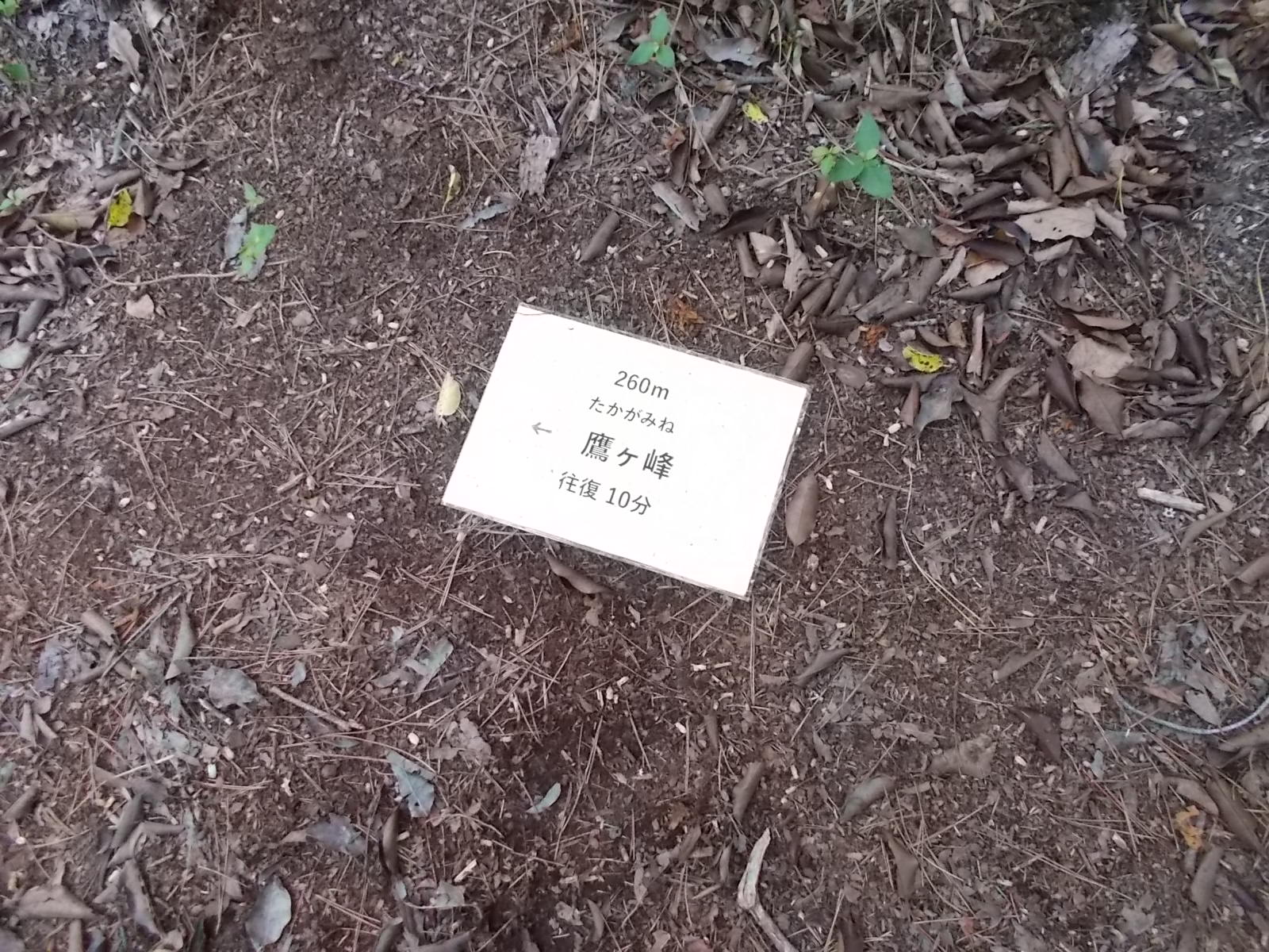 尾根筋に沿って歩くので、道に迷うことはない。 しかし、山を登る会が、方向を示す案内板を地面に置いてくれている。 これがあれば安心。