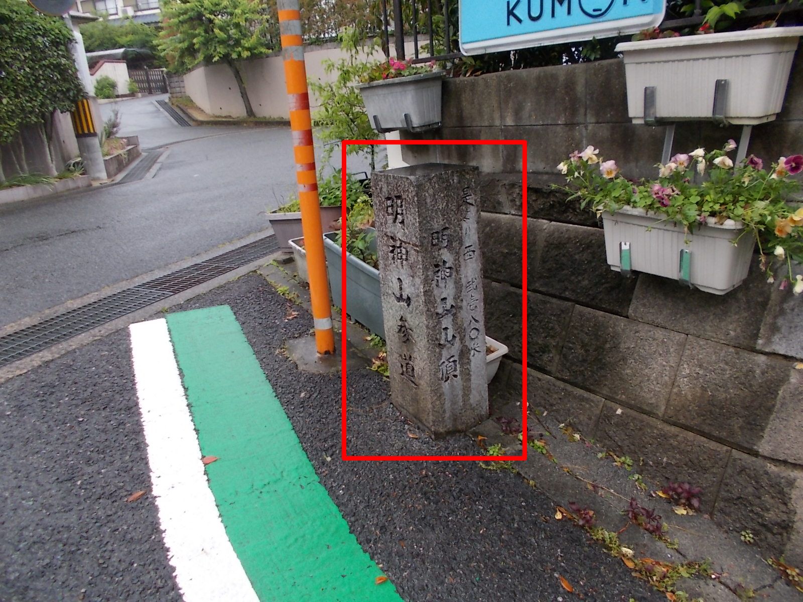 しっかりとした登山道。 尾根道には石柱が埋められていた。(赤四角印) つづく。