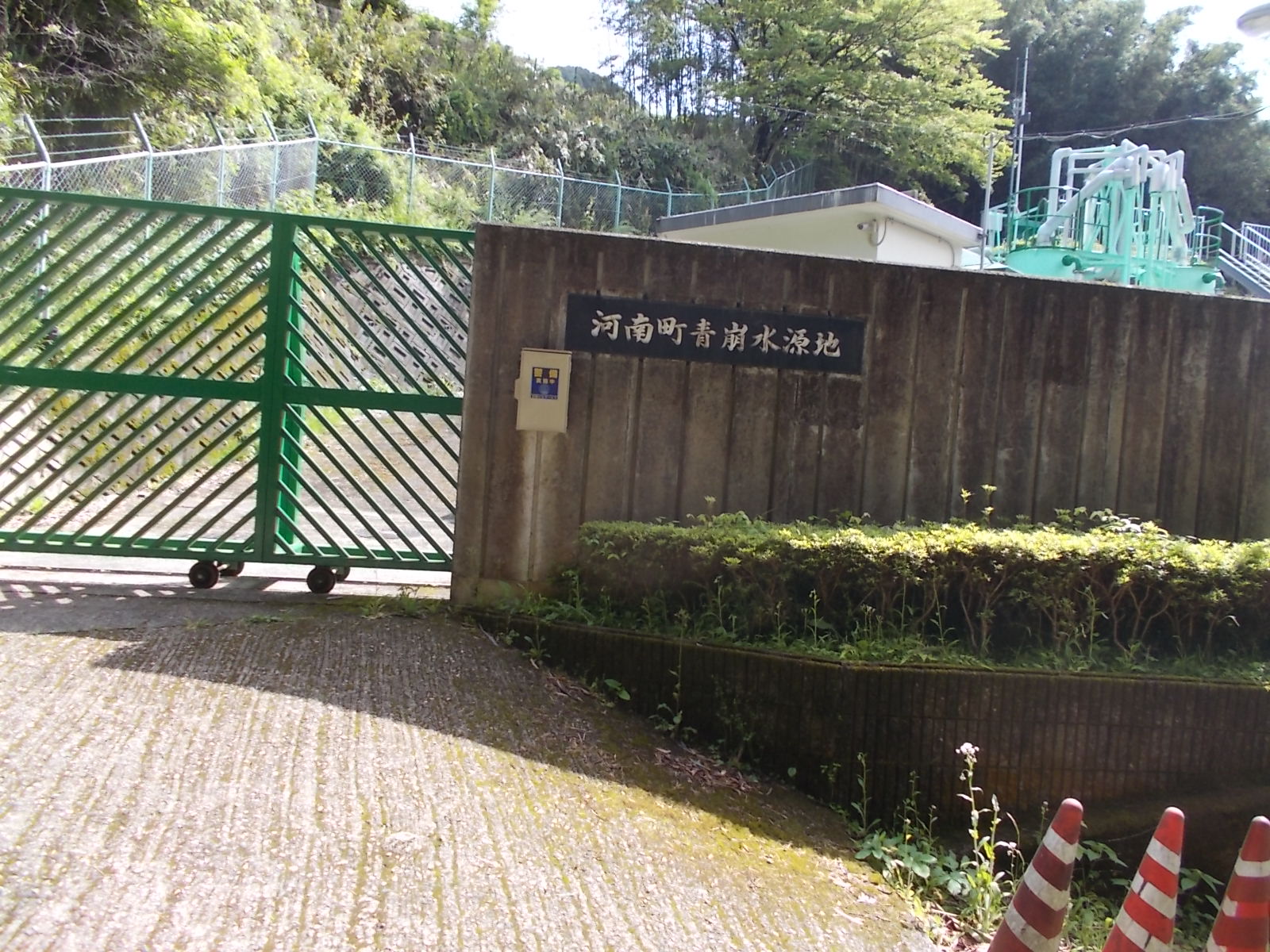 | 河南町青崩(あおげ)水源地を右に見て北へ歩く。