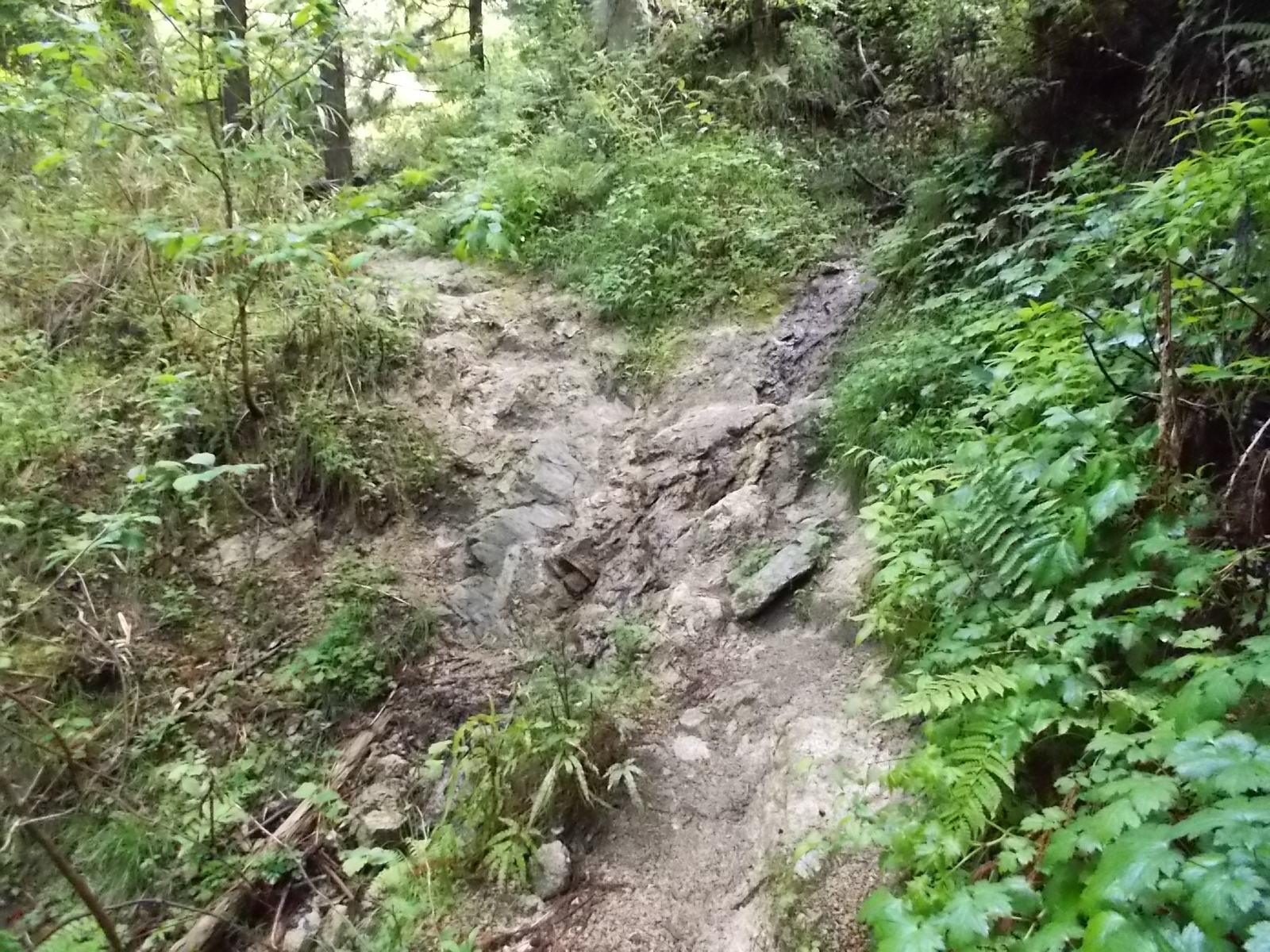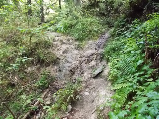 | ここも土砂が流れ落ち、階段がむき出しになりつつある。