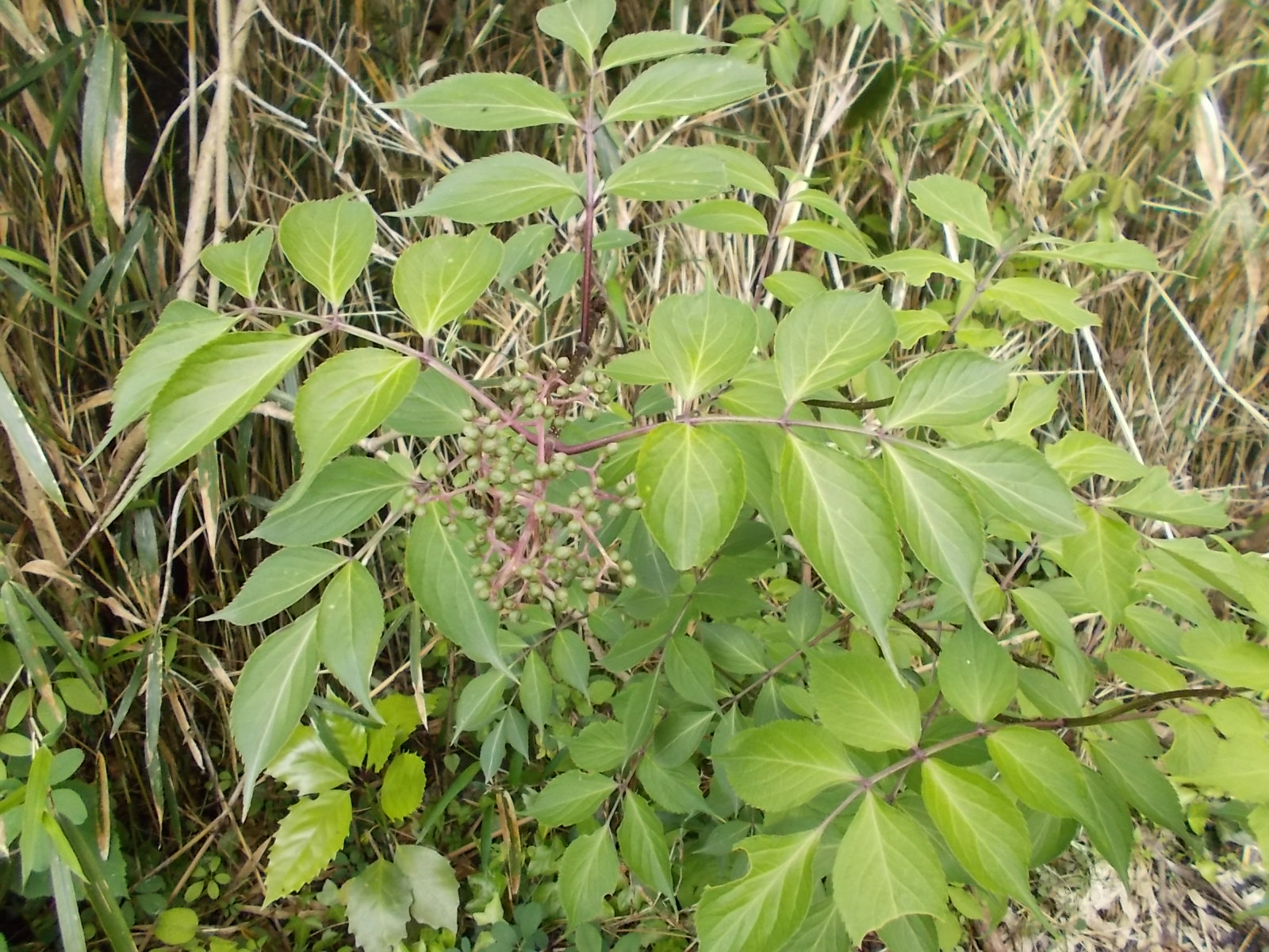 | ニワトコと見られる。(接骨木) 【AI による概要】 ニワトコの漢字は「接骨木(せっこつぼく)」です。 これは、枝や幹を煎じたものを骨折の治療に用いたことに由来します。 また、「庭常」と書かれることもあります。