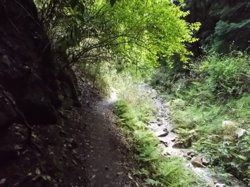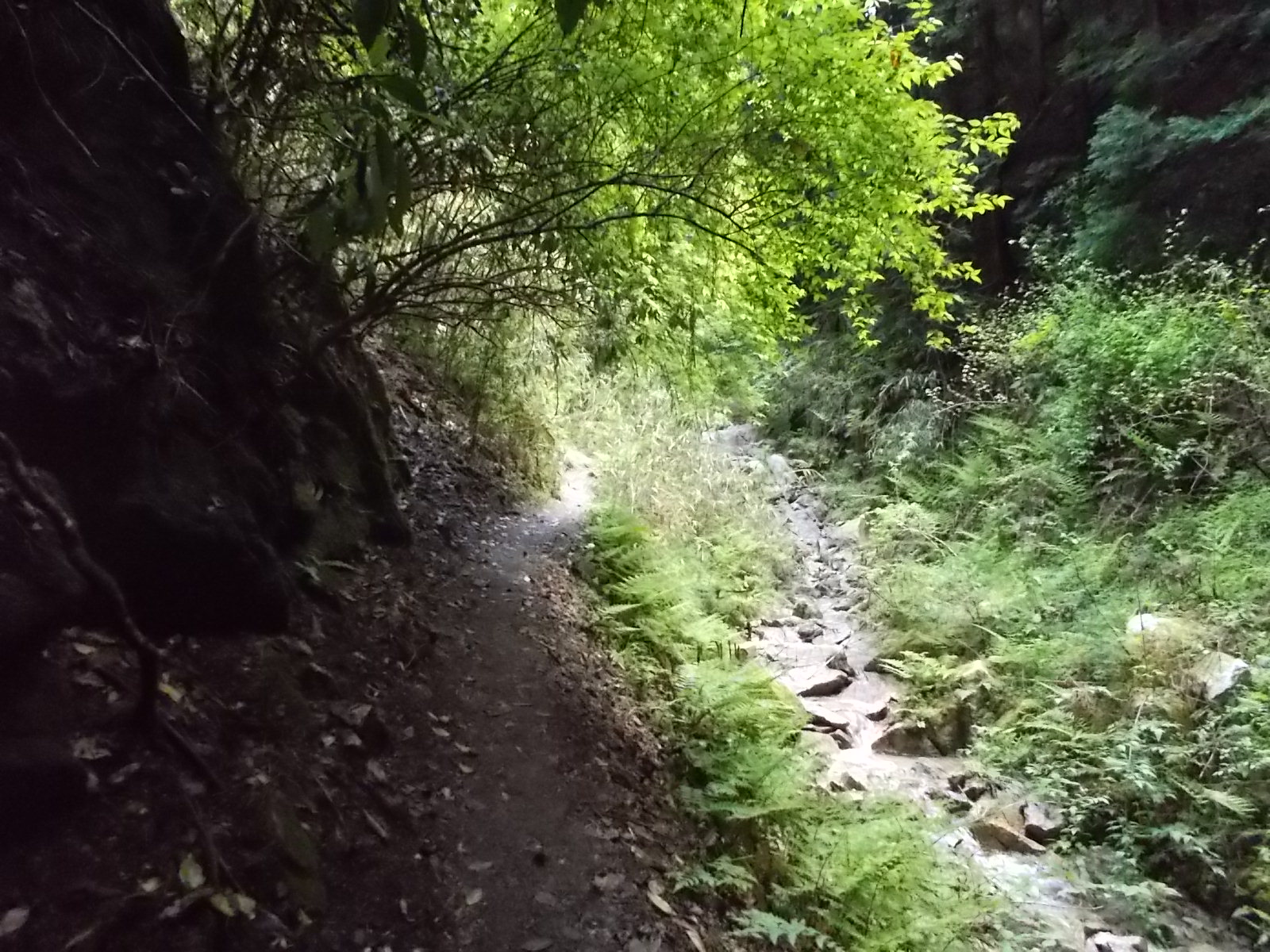 | 右側に天狗谷のせせらぎを聞きながら右岸に続く登山道を歩く。