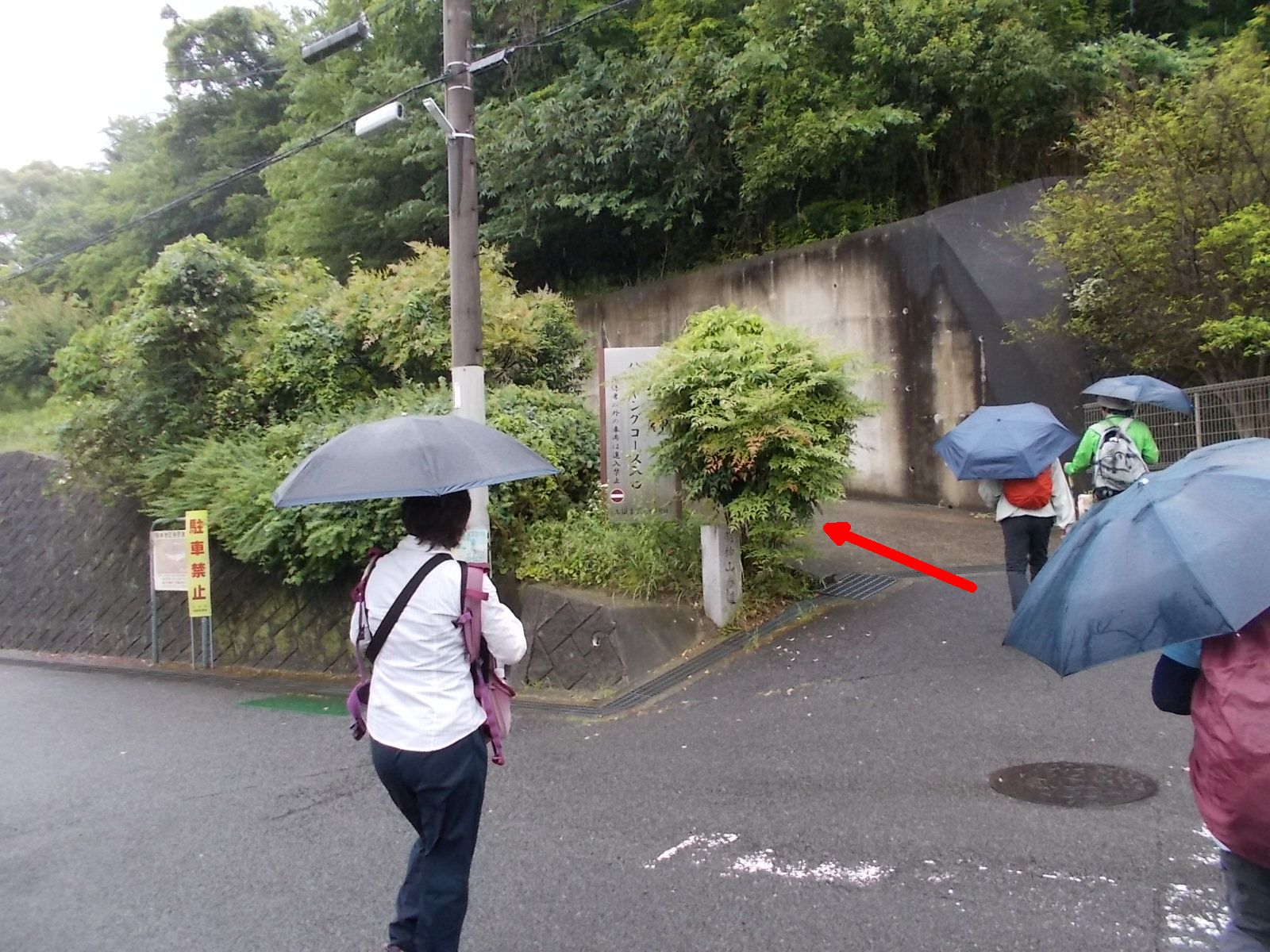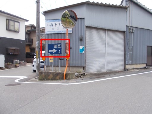この先、右折。 松の木に「赤矢印→」が貼ってあった。