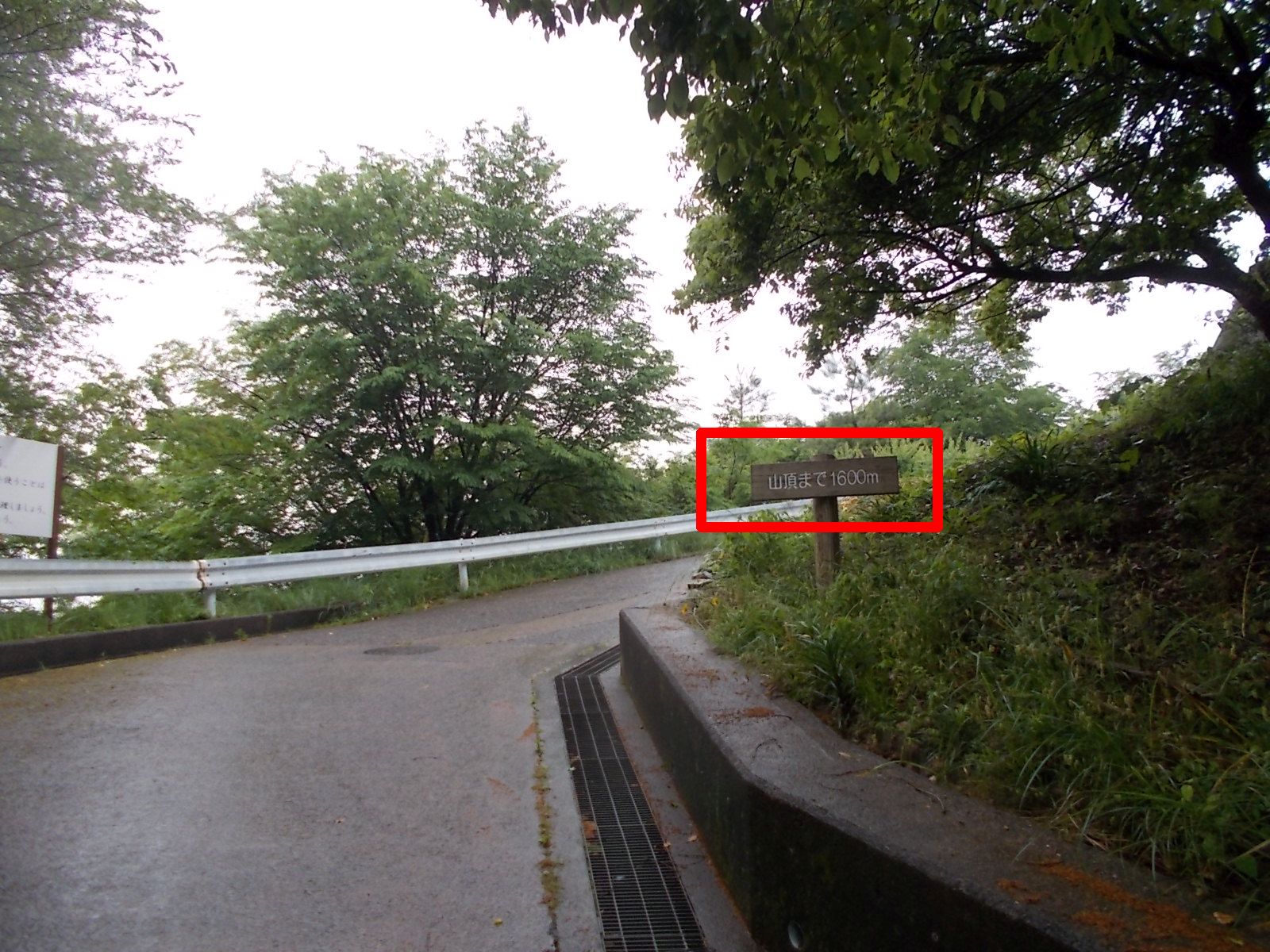 | 歩きはじめると、「山頂まで1600m」の案内板。 この後、山頂までこのような案内場が立ててある。