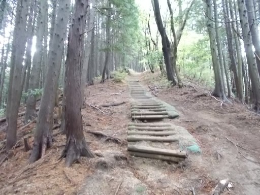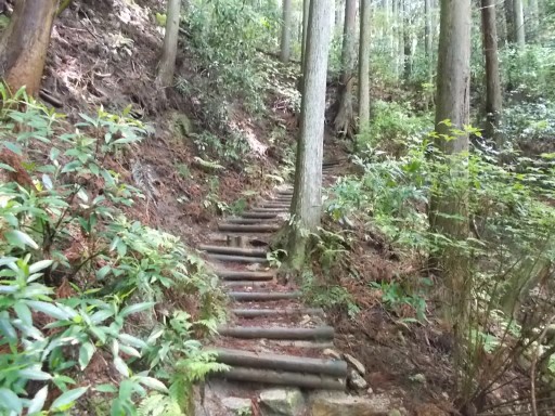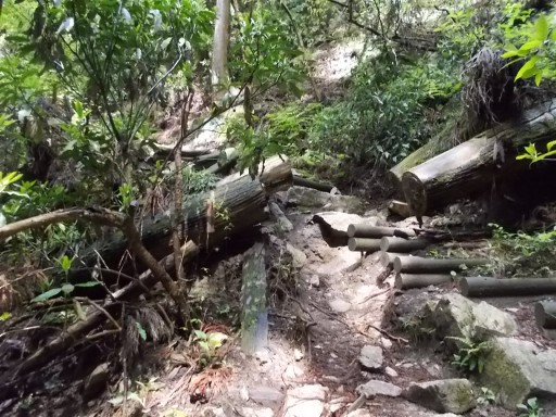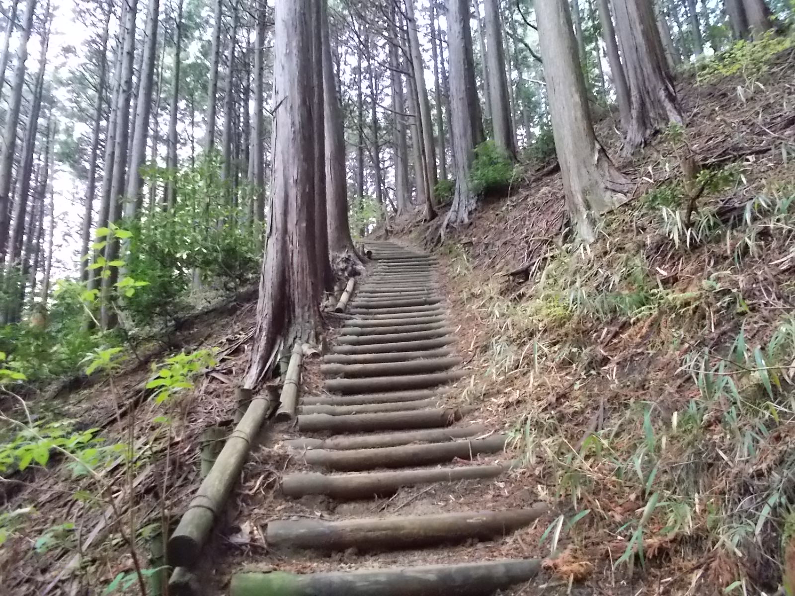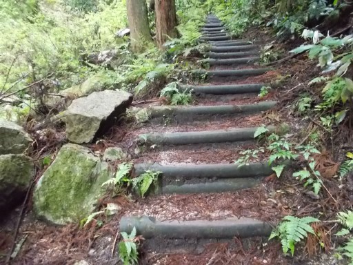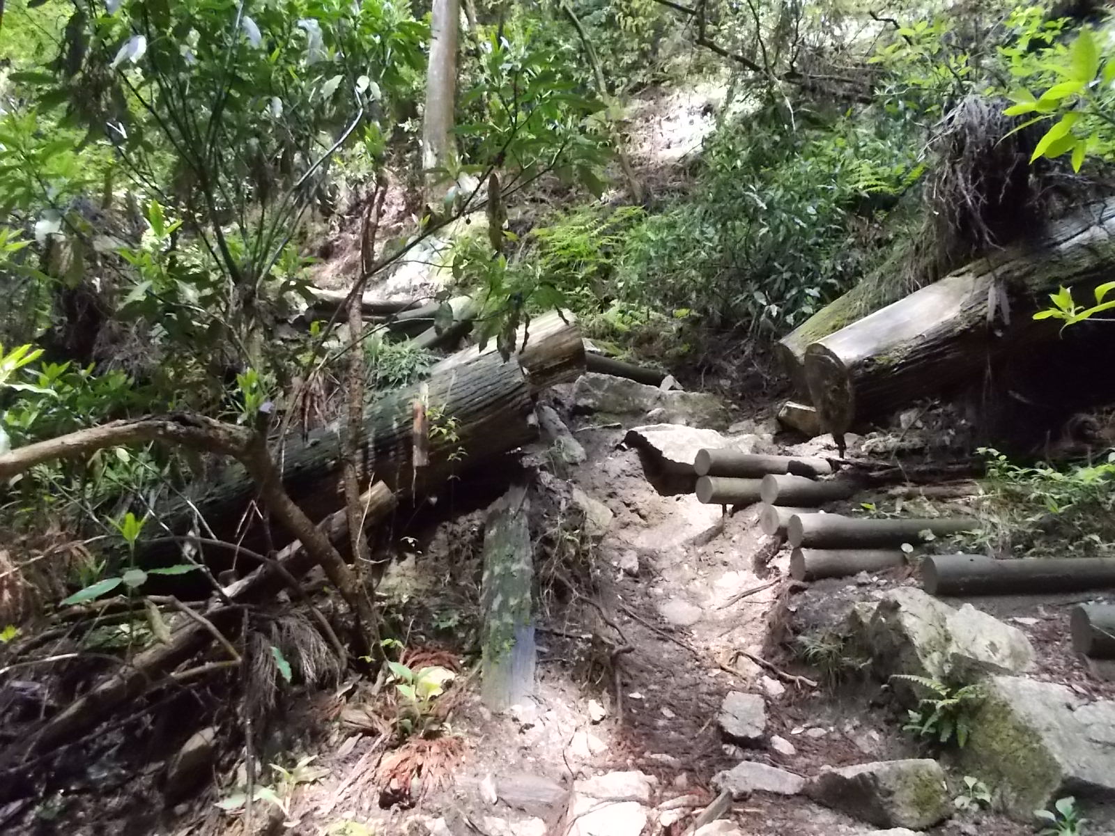 | ここは登山道が崩壊して、階段がむき出しになっている。