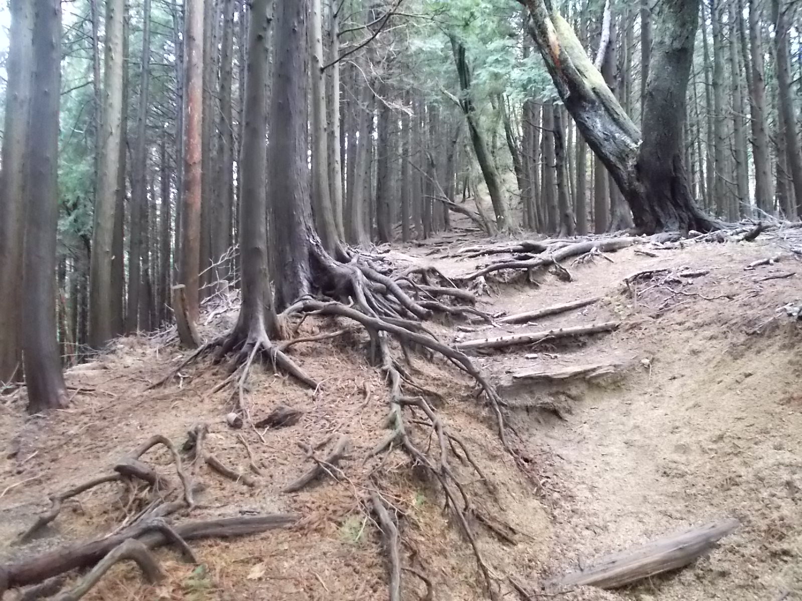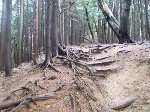 | 再び歩きはじめる。 木の根っこが露になっている。