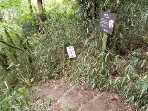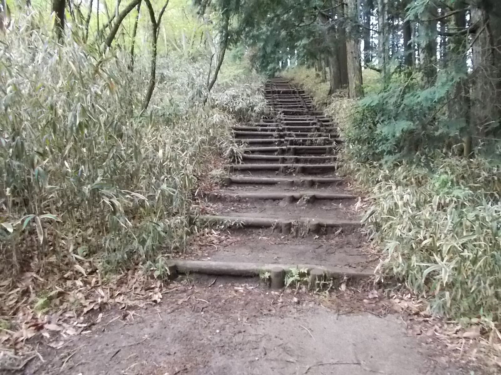 | ここから先、急坂となる。 おまけに階段の段差が高いので歩きにくい。 特にシルバー世代にはきつい。