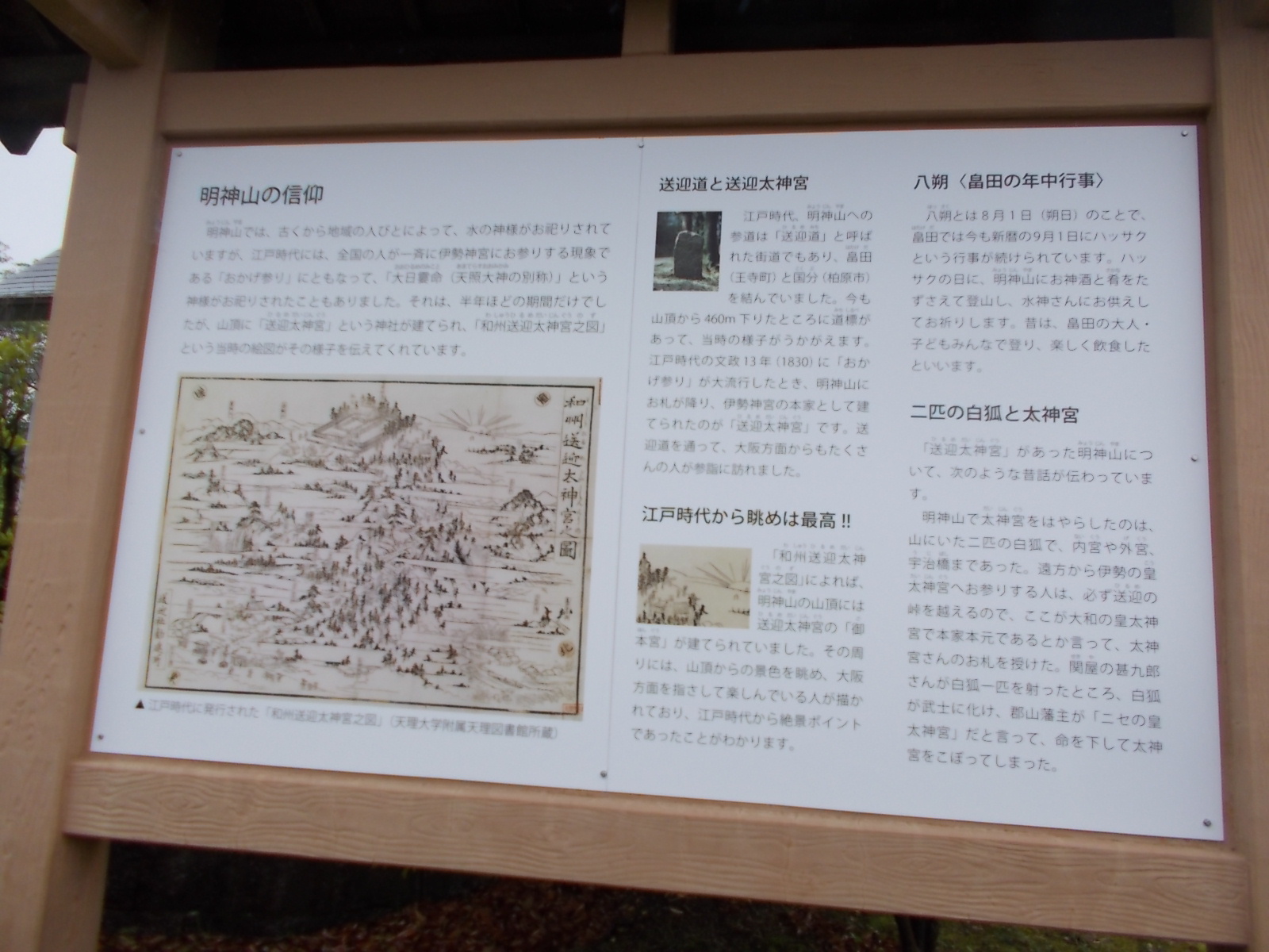 【AI による概要】 明神山の信仰は、主に神仏習合の影響が色濃いもので、山頂に鎮座する「水神社」を中心とした修験道の歴史と深く結びついています。