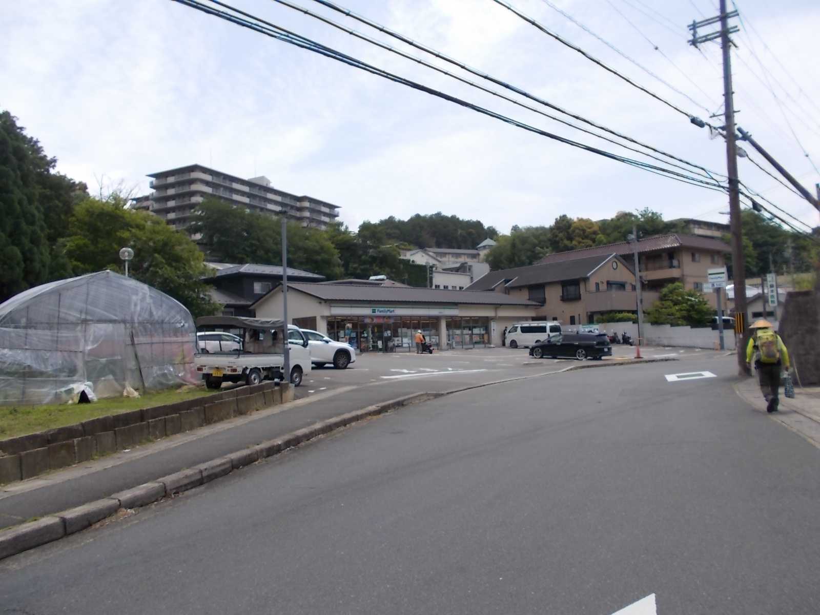 左手にコンビニがある。 (ファミリーマート 京都原谷店)
