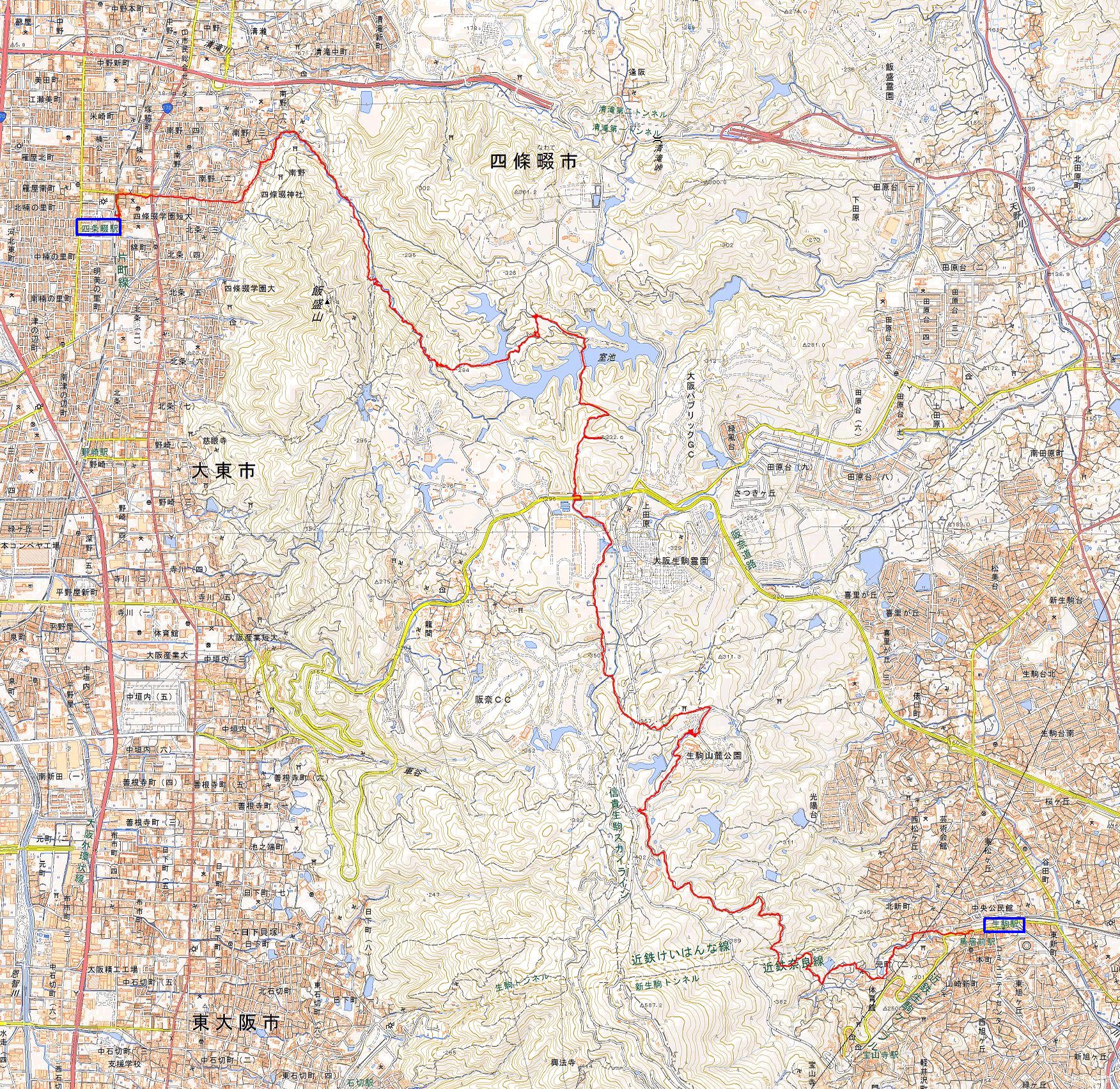 | 四条畷駅_室池園地_生駒山麓コースB_生駒駅2 |