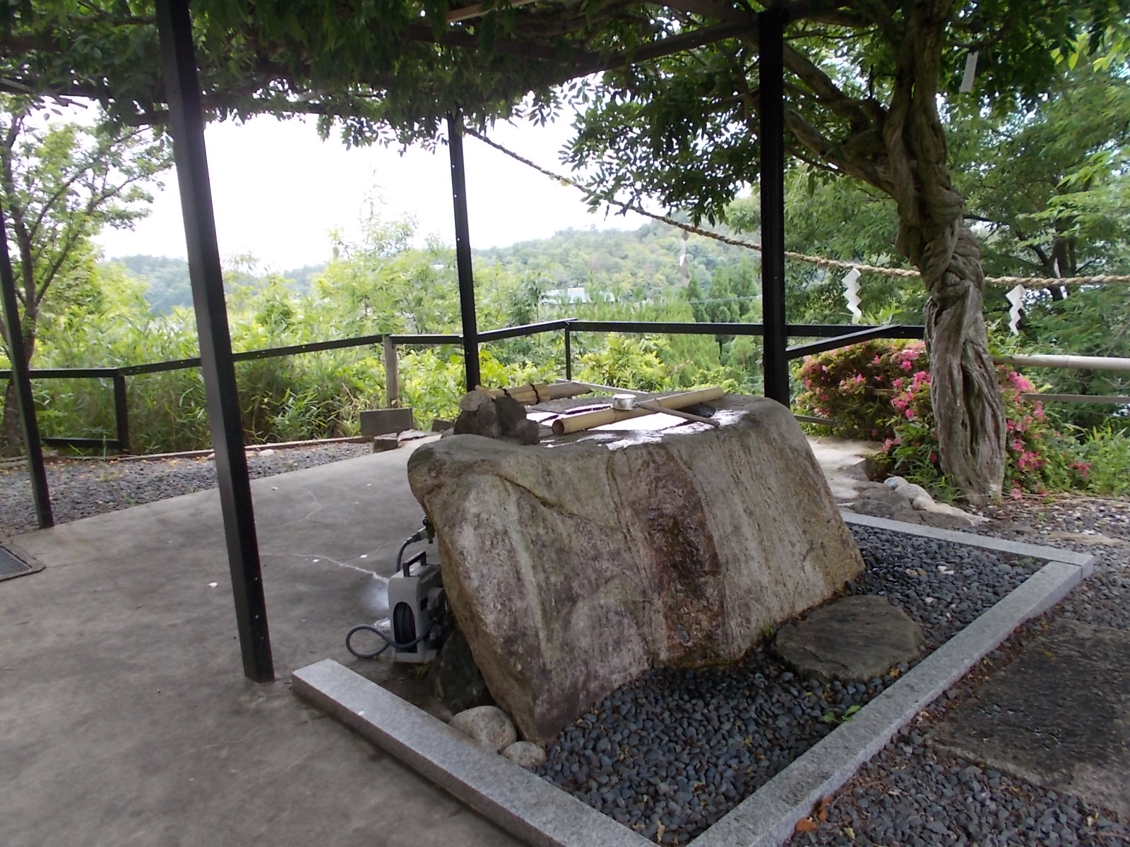 手水鉢。 ちょっとした高台に位置しているので、付近の眺めが良い。