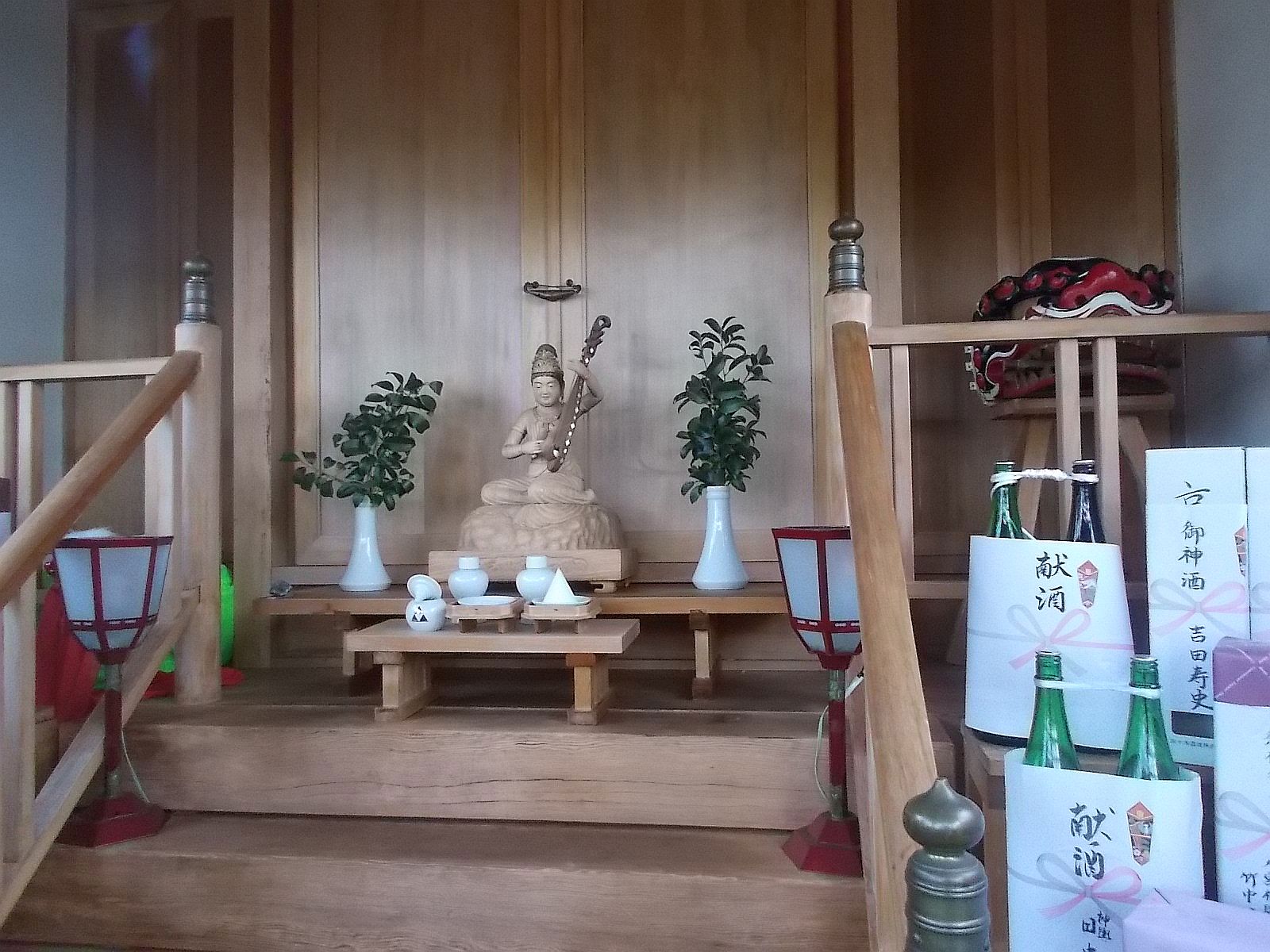 厨子の前に、可愛い弁財天様が祀られている。 手にお持ちなのは、ヴィーナと呼ばれる琵琶に似た弦楽器。 【参考】ヴィーナ 楽器