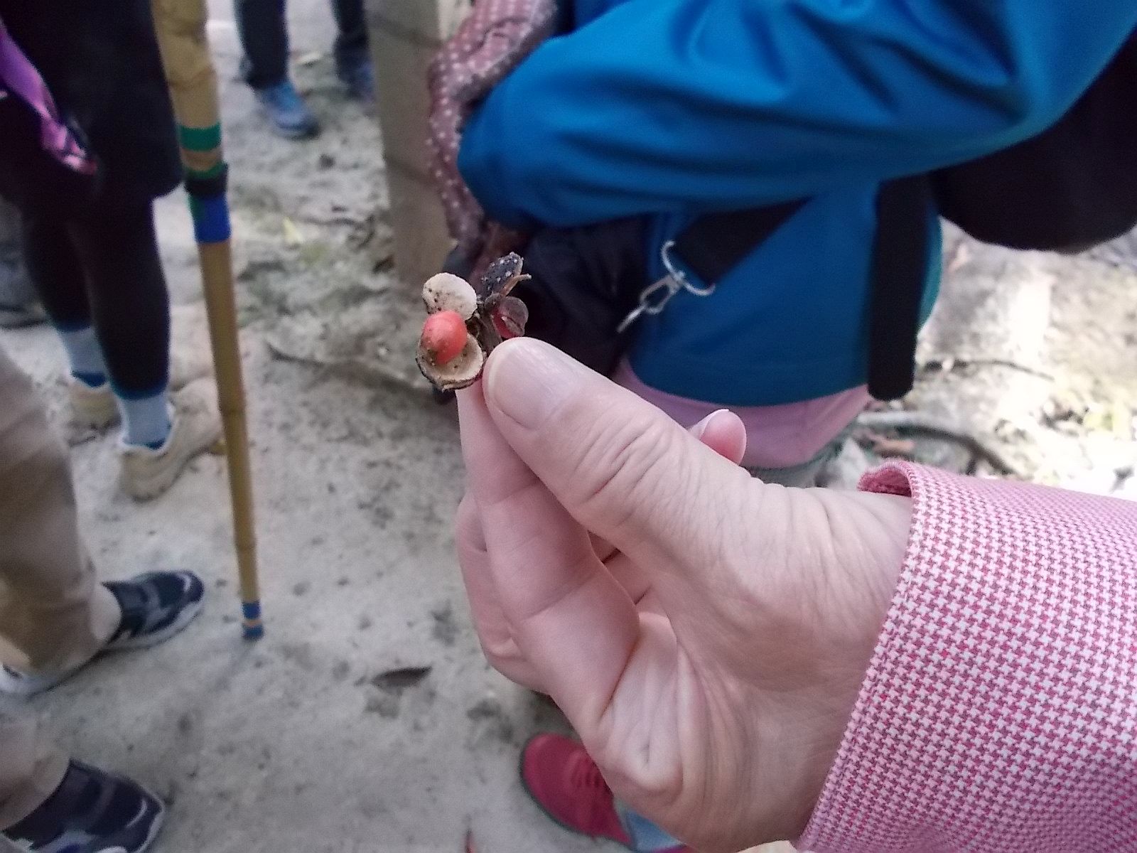 | 更に鞘の中にはオレンジ色の種があった。 ハナミズキの種に少し似ている。