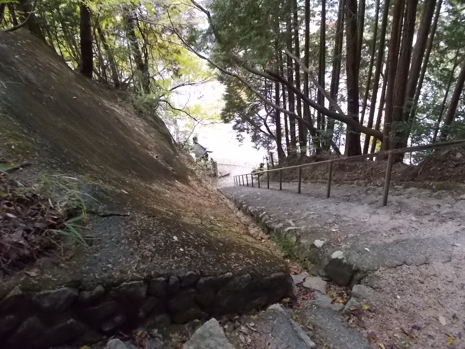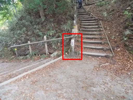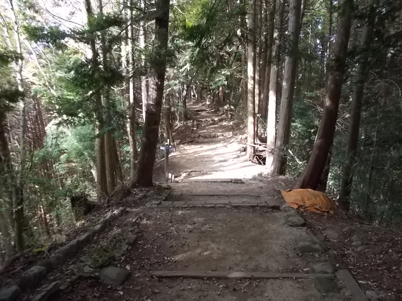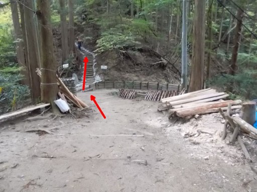 二合目まで降りて来た。 コースは千早本道を離れ千早神社、千早城址へ向かう。(赤矢印) つづく。