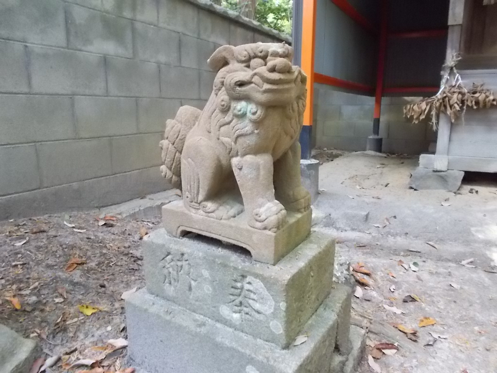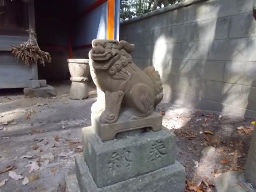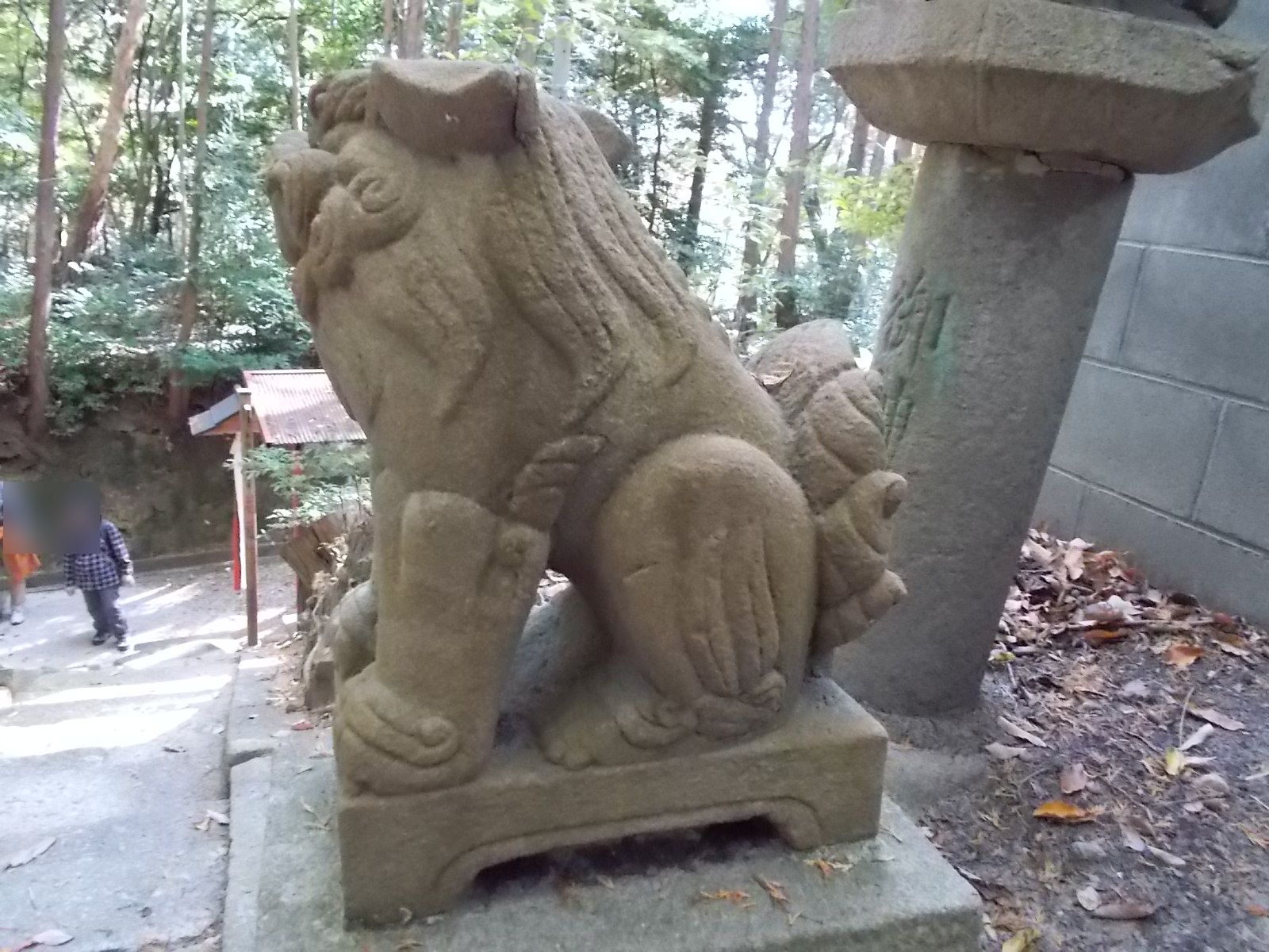 | 向かって右側の口を開けた狛犬「阿形」。(あぎょう)