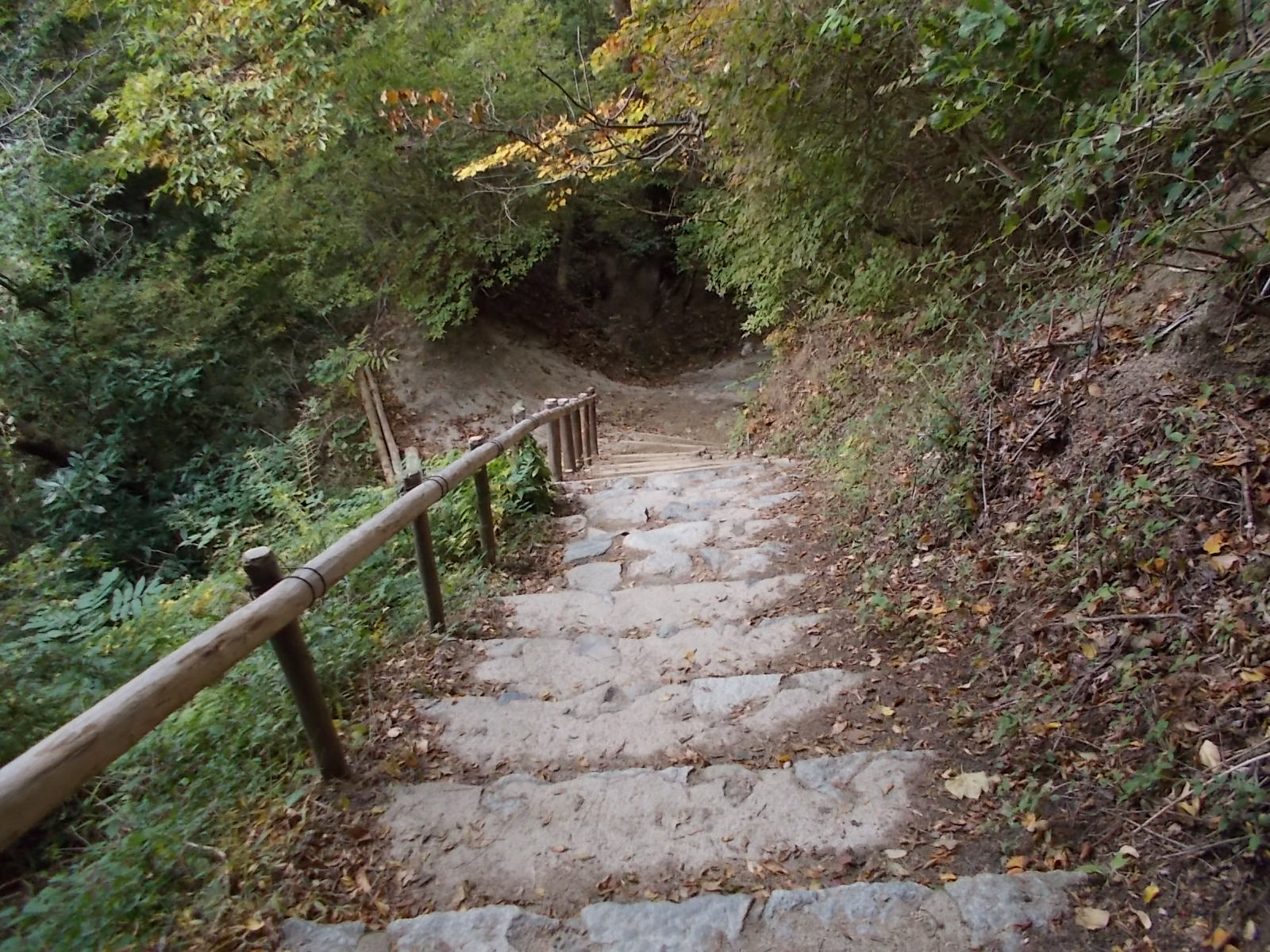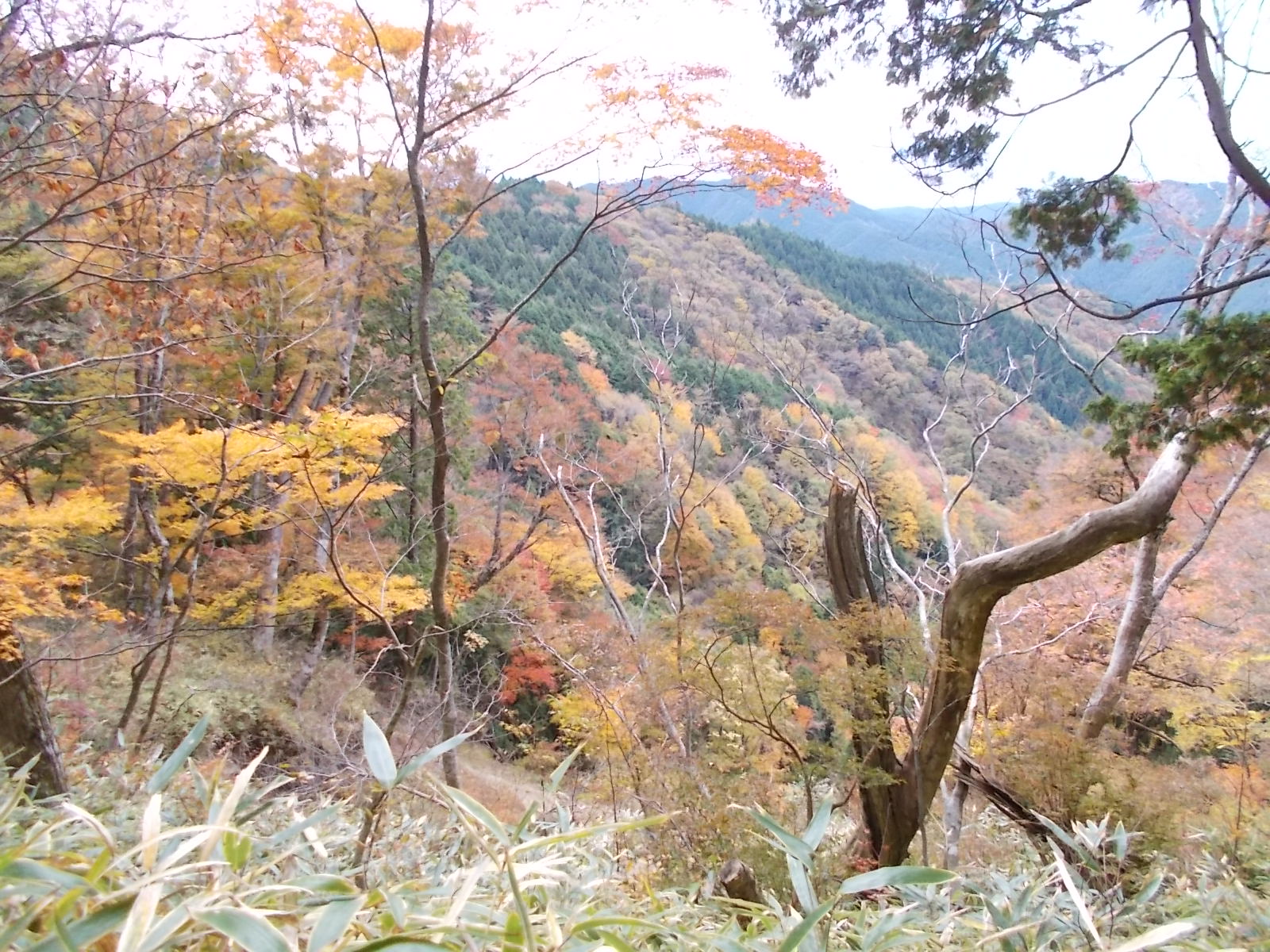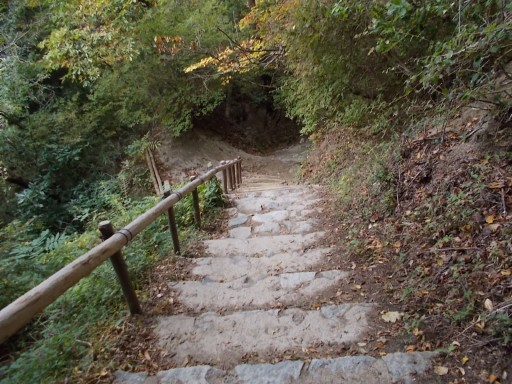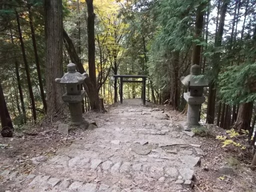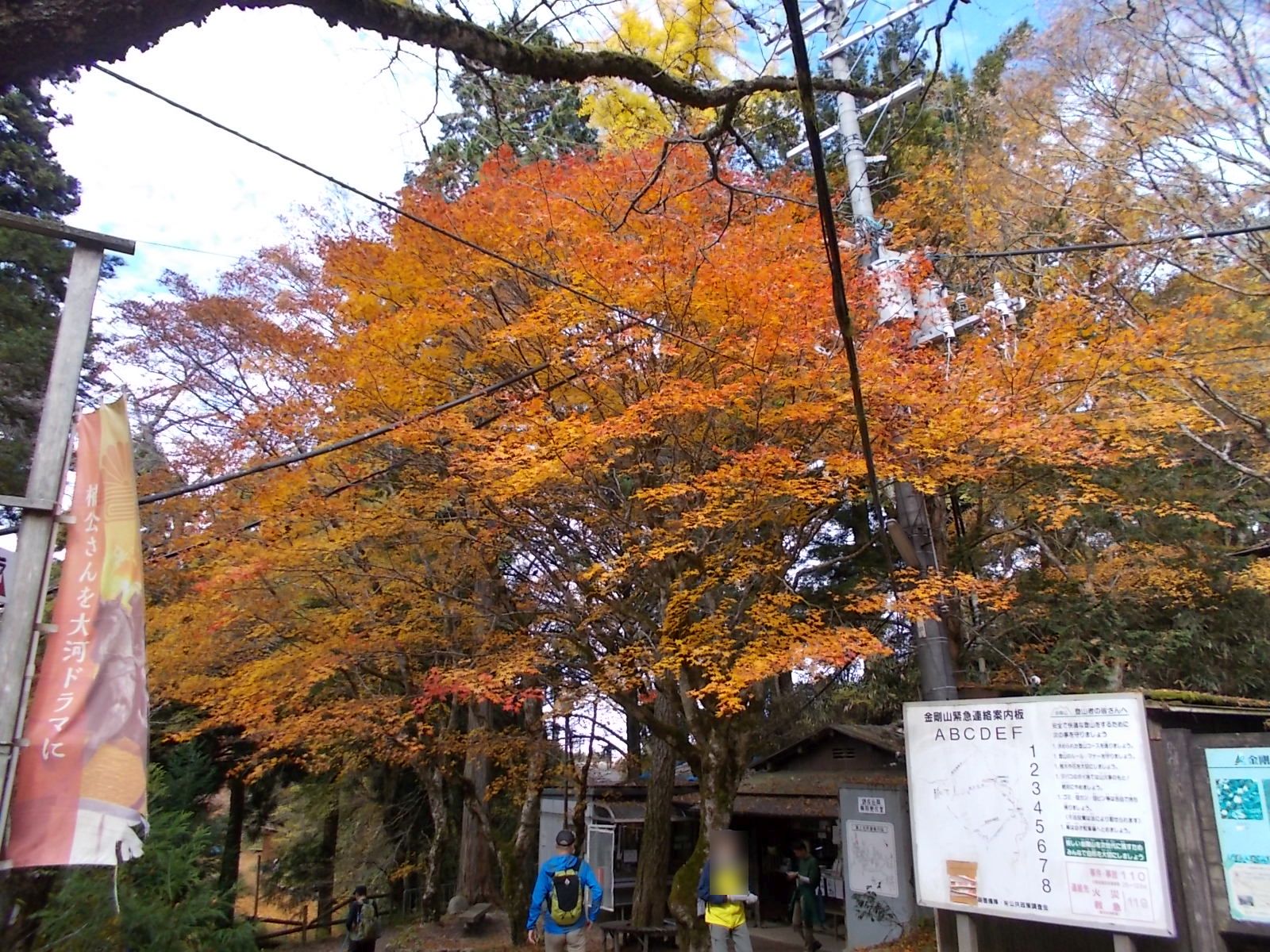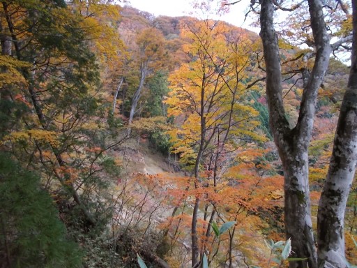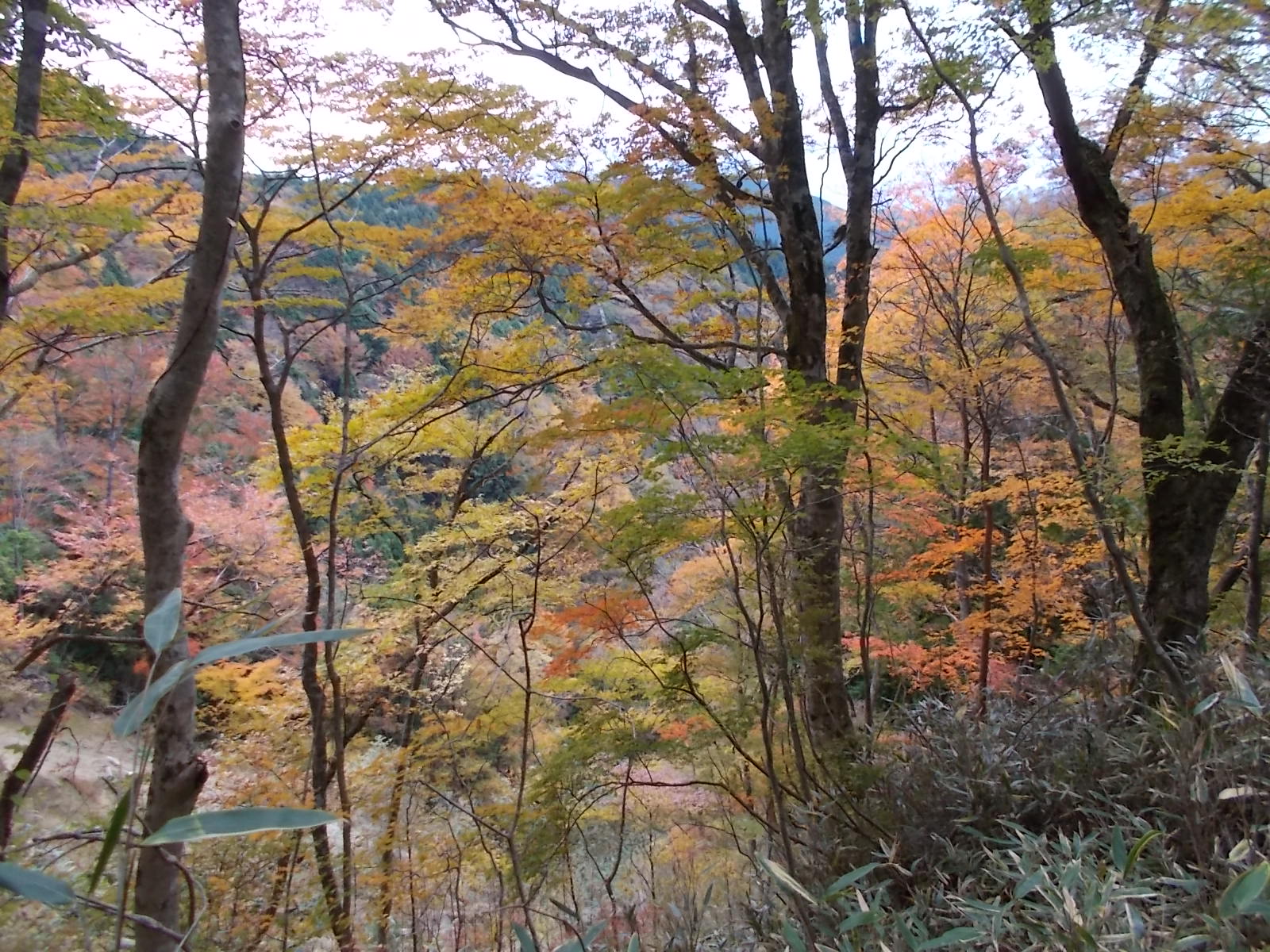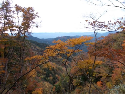 途中二合目で千早本道を離れ千早神社、千早城址を下る。 これは千早神社の黄葉が期待出来るかもとの思惑だったが、結果は外れだった。 画像は九合目付近の黄葉。