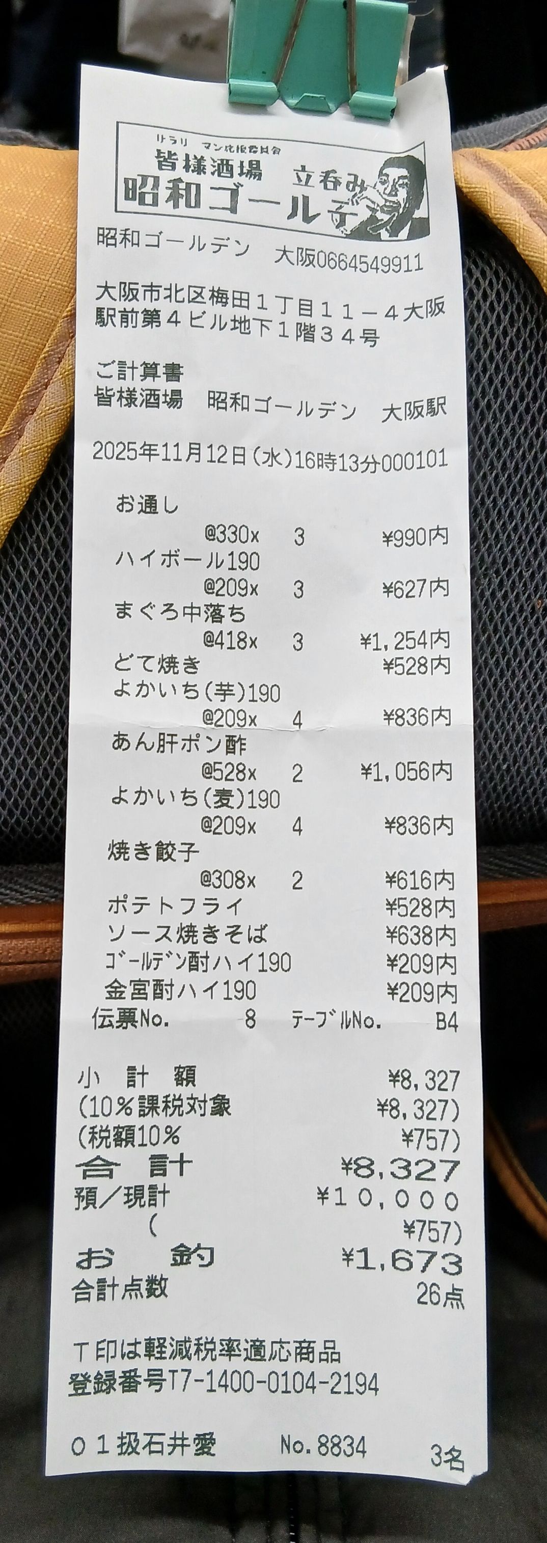 反省会は、皆様酒場 昭和ゴールデン 大阪駅前第4ビル店 大阪市北区梅田1丁目11−4 大阪駅前第4ビル B1F 13時~22時 不定休 年末年始不明 店内の雰囲気。