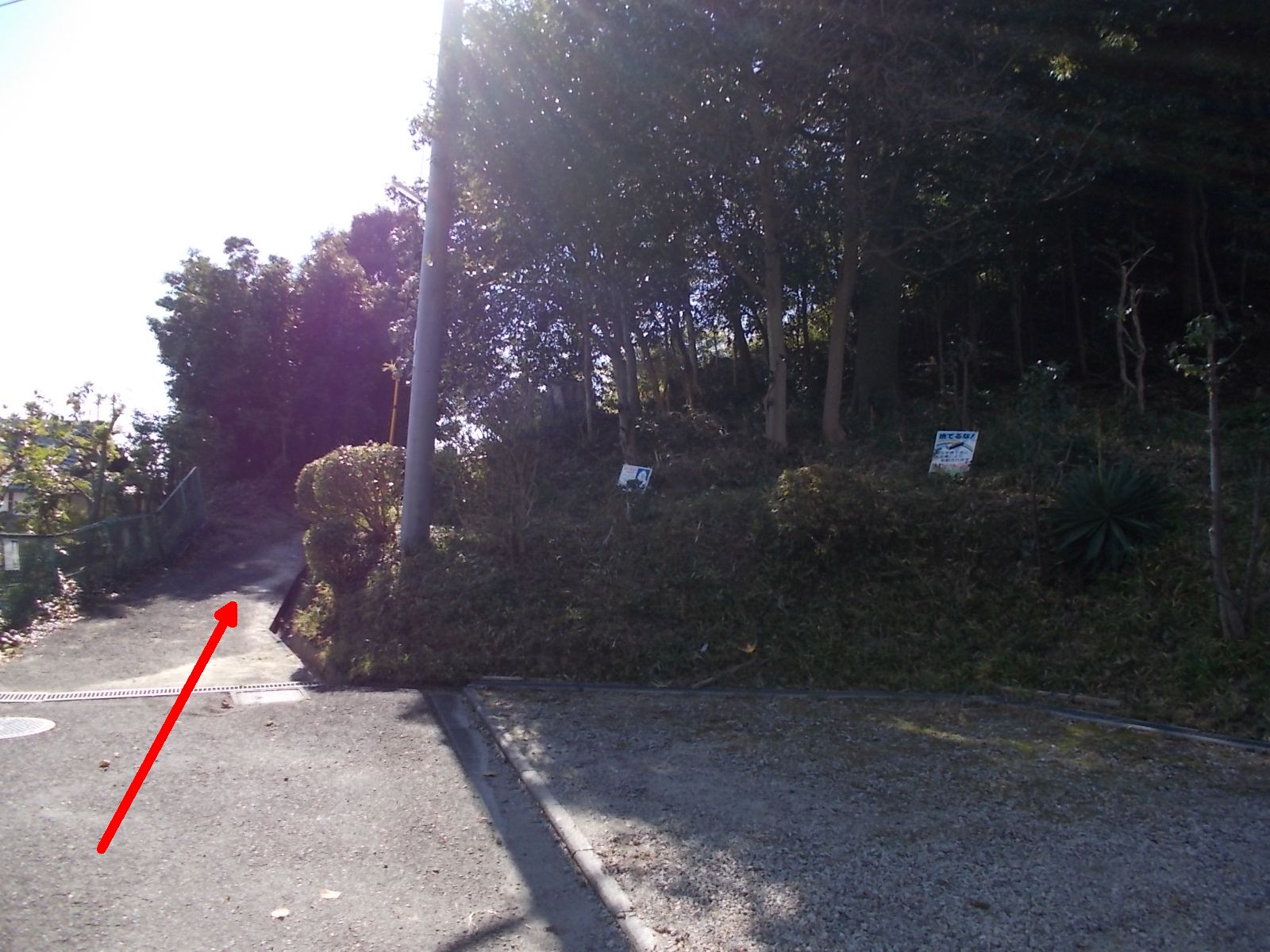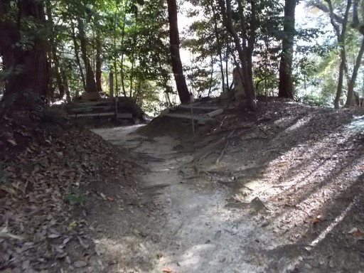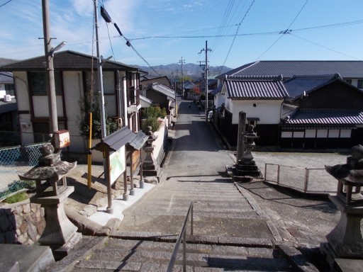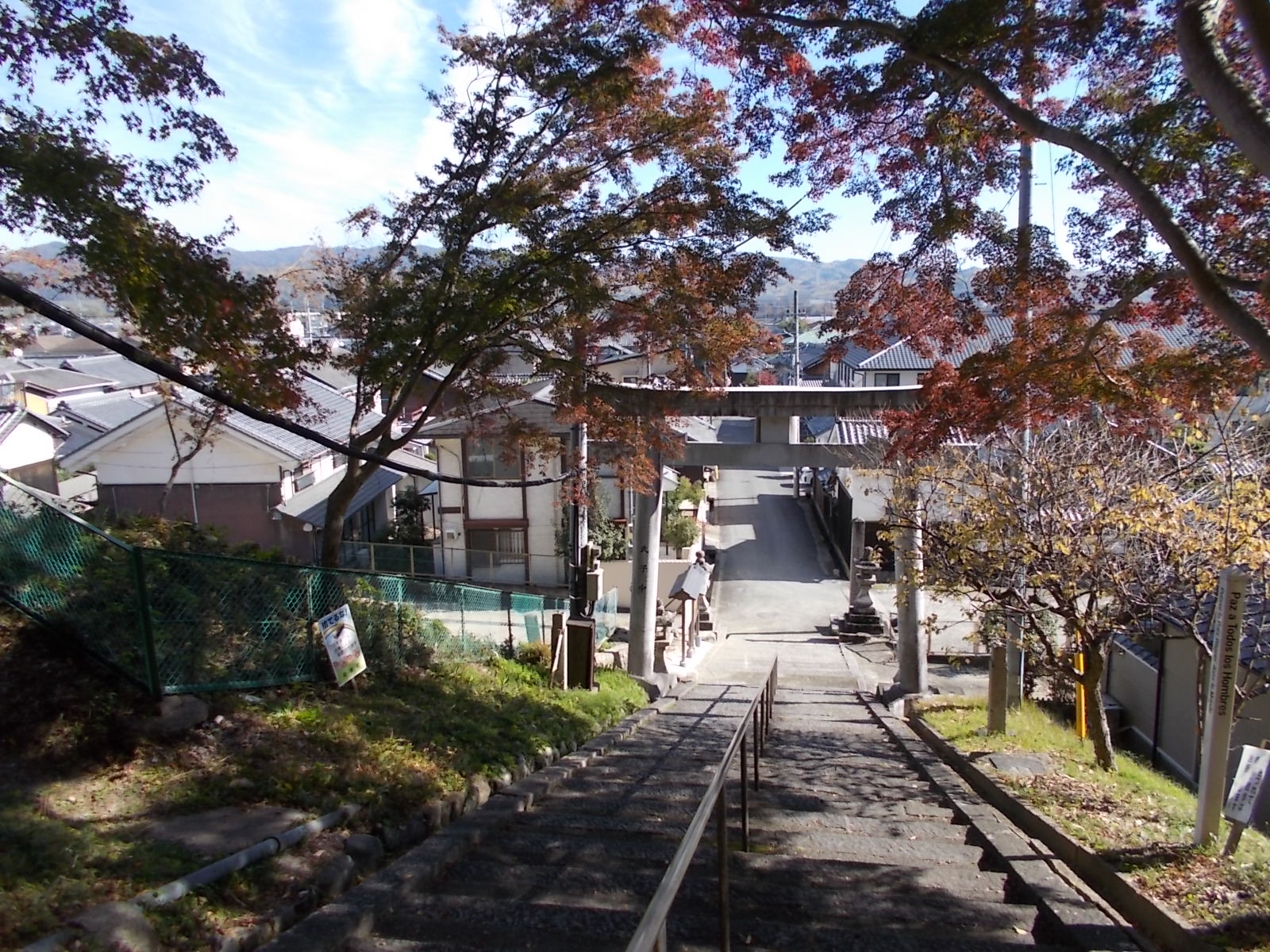| すると、鞍岡神社参道の石段途中に出た。 コースは右上。