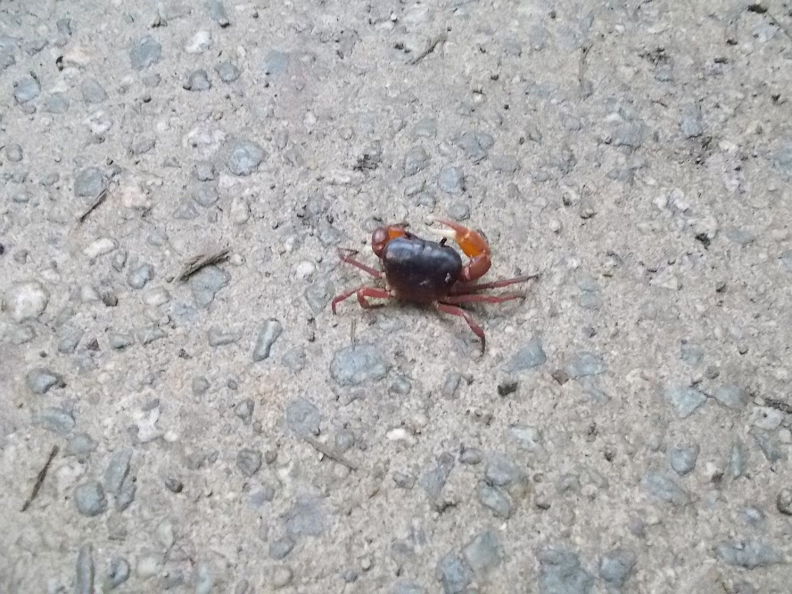サワガニがいた。(沢蟹) 日本固有種だとか。 踏まれないように、横にのけておいた。