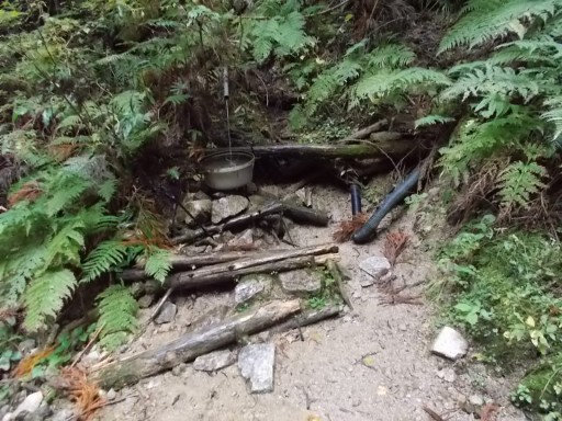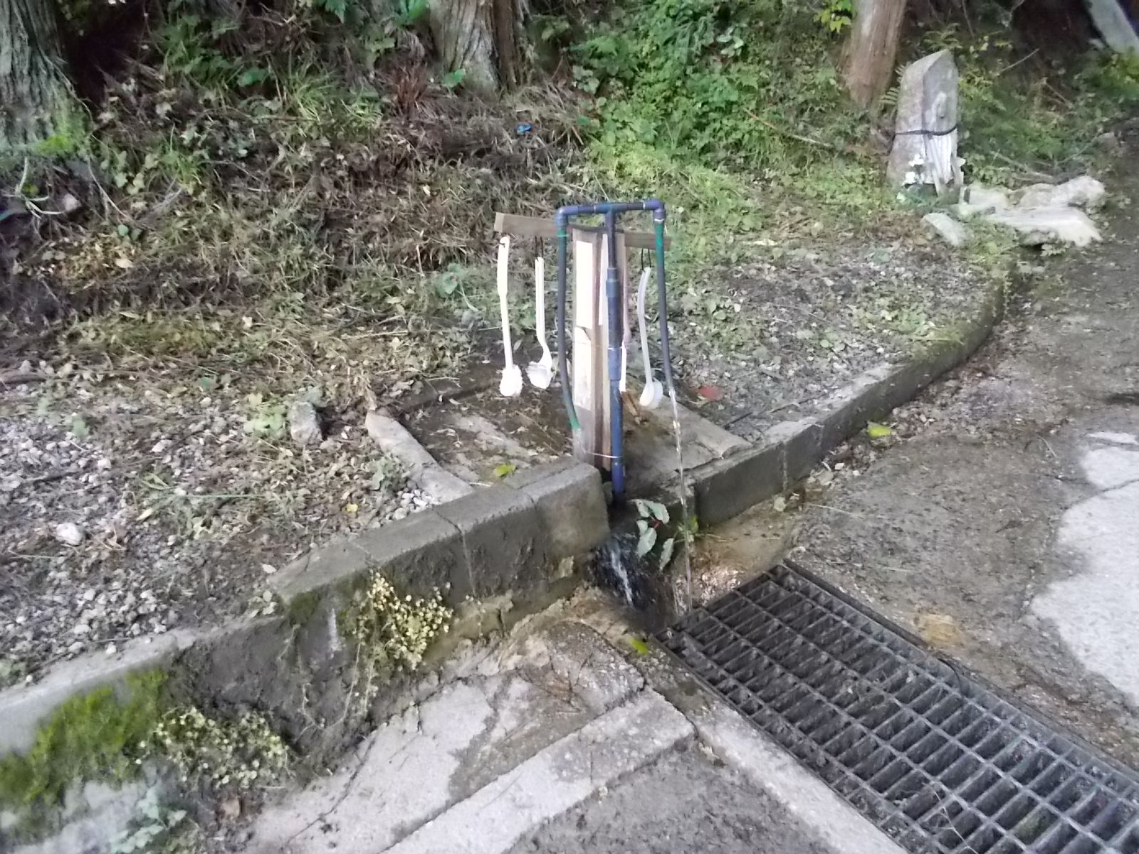 水場を左に見て歩く。 つづく。