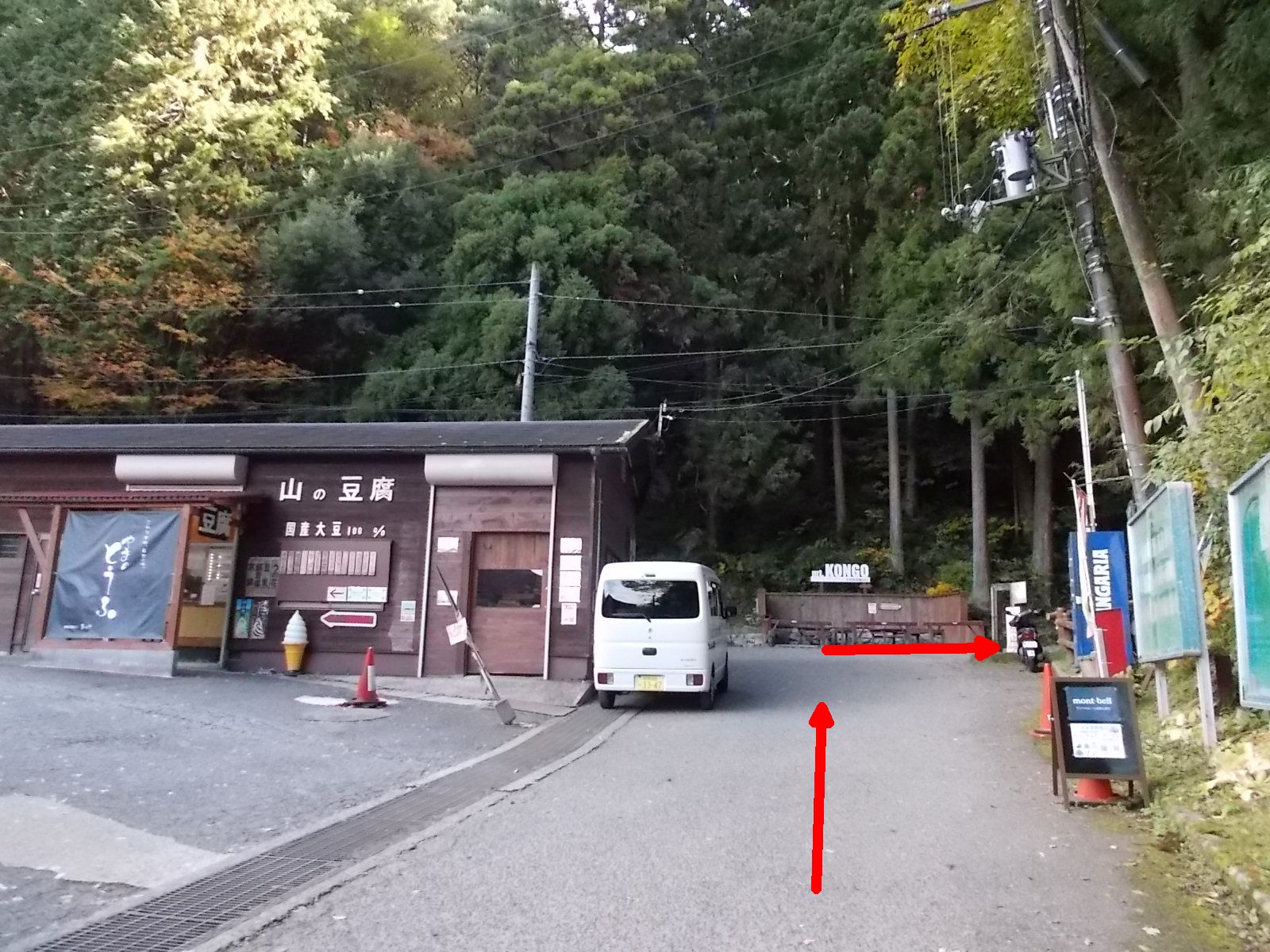 「金剛山 山の豆腐の店」を左に見て、正面突き当りを右折。
