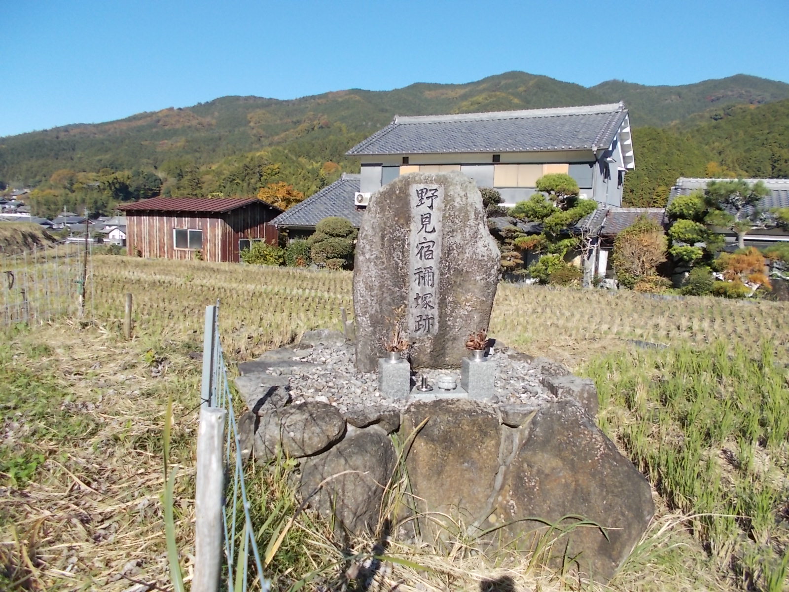 石碑には「野見宿禰塚跡」と刻まれている。 (のみのすくねつかあと) “野見宿禰”は、相撲の祖とされる伝説的人物。 その塚(墓?)の跡地となっている。 葛城市や香芝市周辺の相撲発祥地とどういう関係があるのか不明。