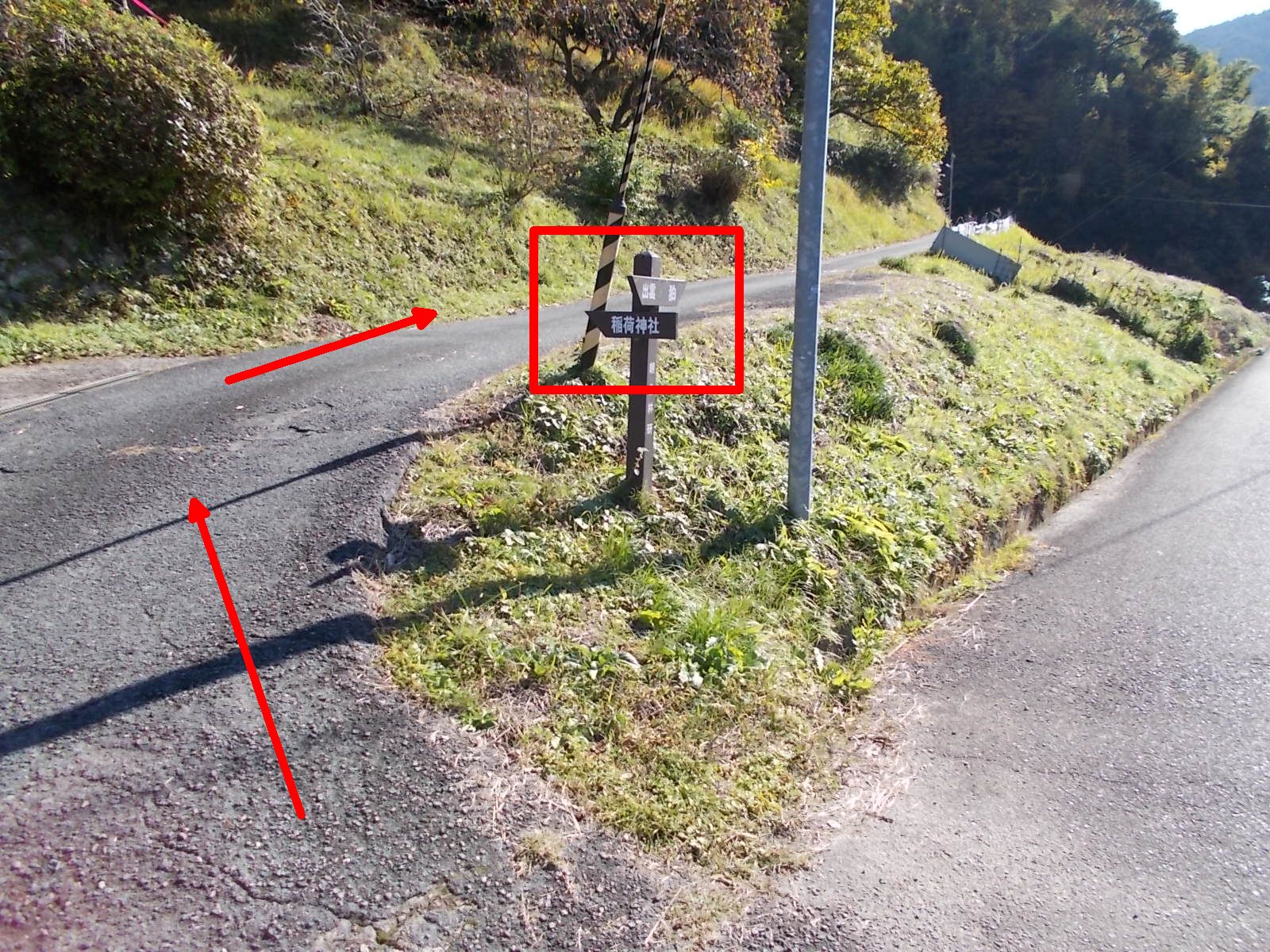 暫く歩くと再び分岐。 コースは「←稲荷神社」へ。 直進は狛。