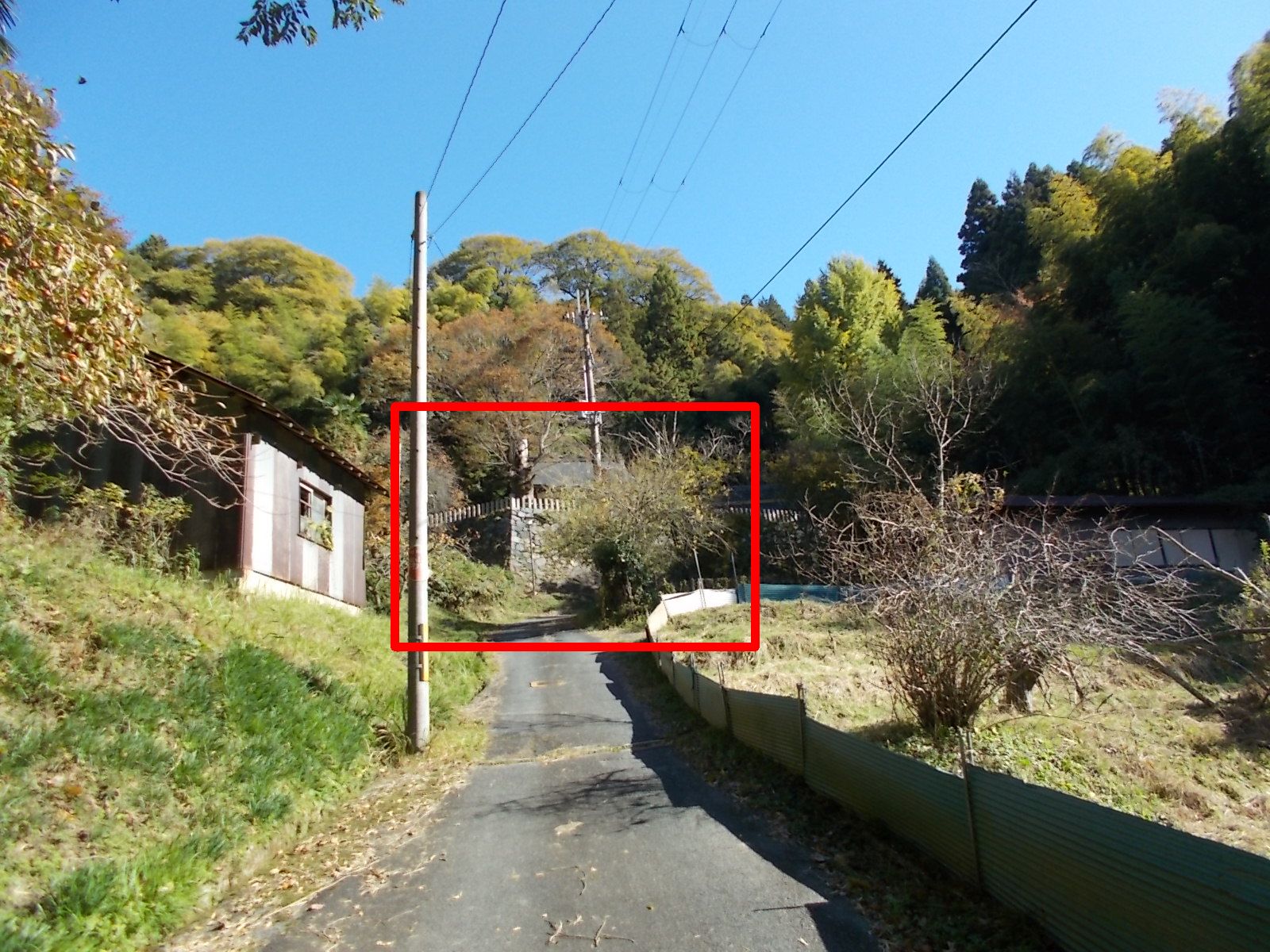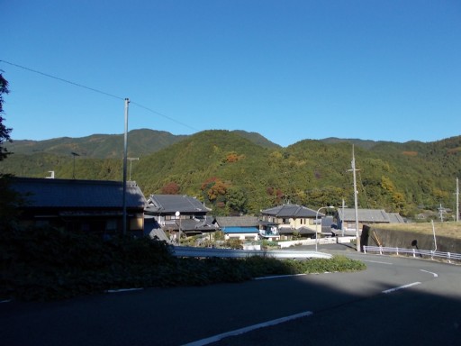 この向こう側は山崩れによって、大きく削られている。 (茶色く見える山肌)