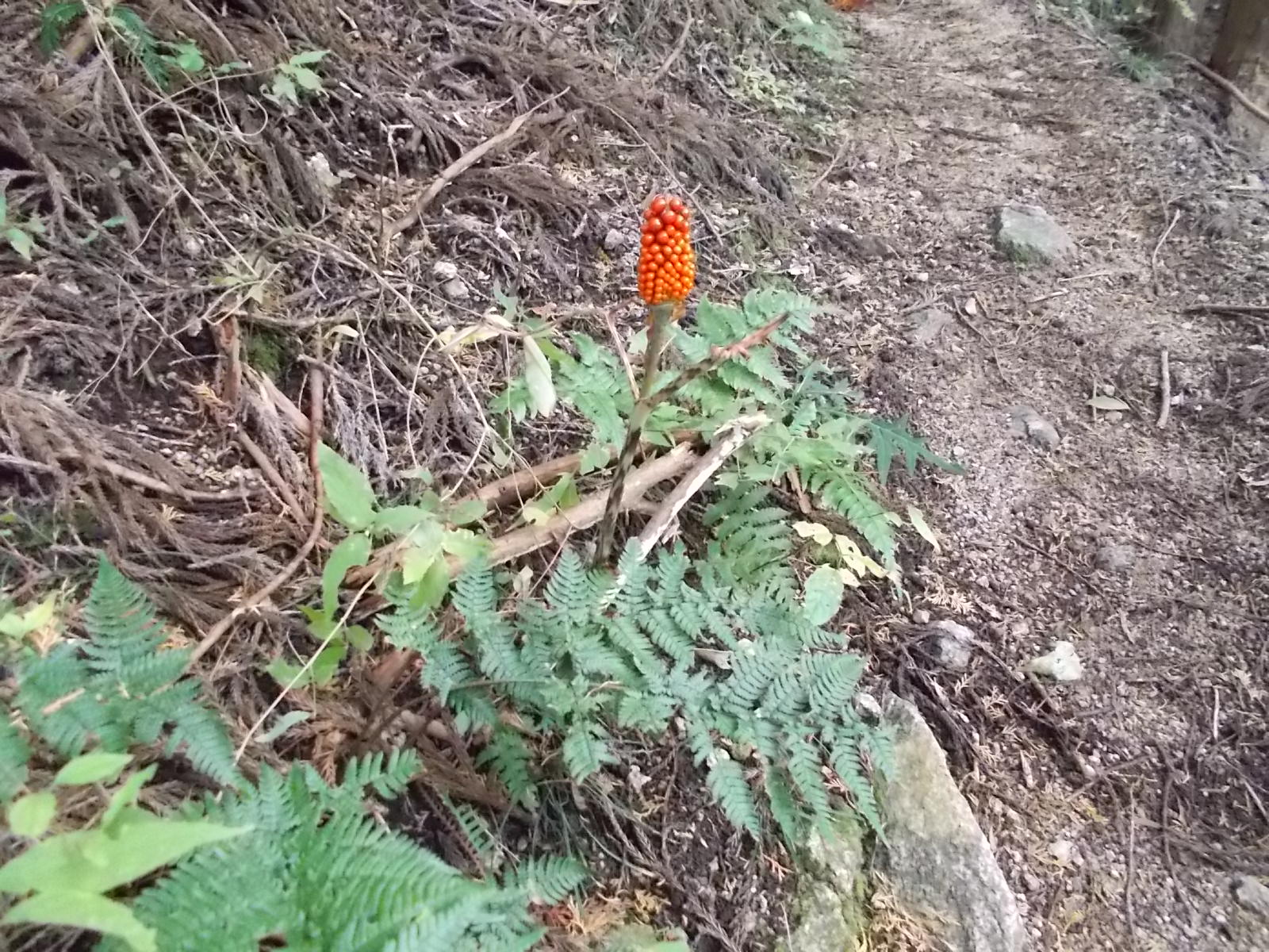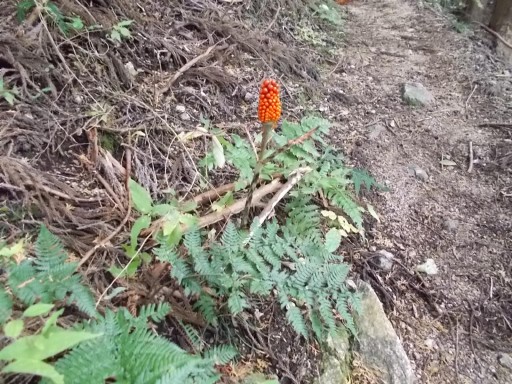 マムシグサの赤い実が生っていた。