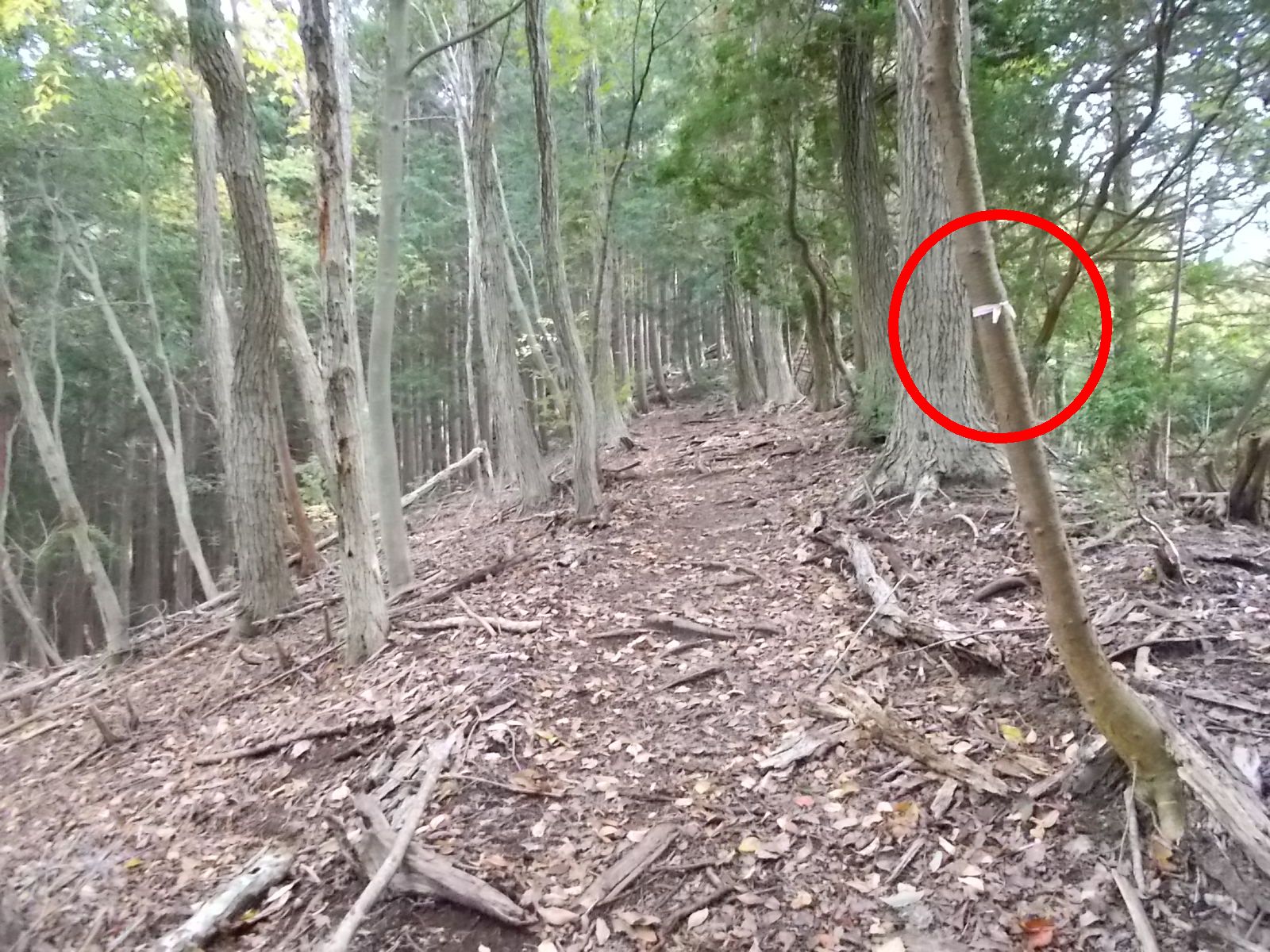 傾斜が緩やかなので、登山道ではなく、山仕事の道と見られる。