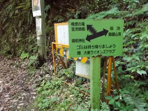 | ここにも大東ライオンズクラブが立てた道標。 「権現の滝、室池(西堤)」方面へ向かう。