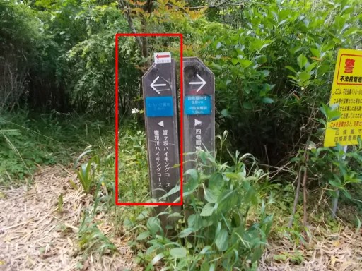 | 暫く歩くと分岐に到着。 ここから権現川ハイキングコースから離れ、「むろいけ園地」へ向かう。
