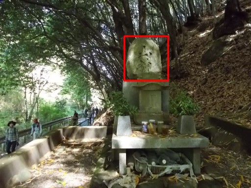 | 進行方向左側に「山神」が祀られていた。 画像は振り返って撮影。 左の道を歩いて来た。