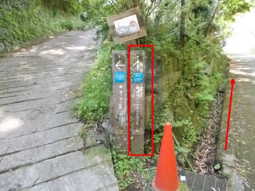 | この先の分岐で直進。(権現川コース 赤矢印)