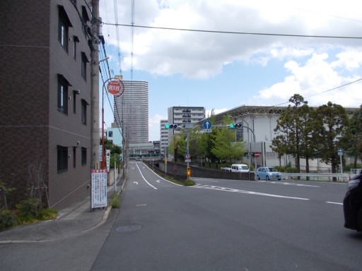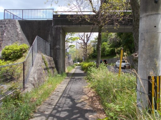 | 今しがた渡ってきた跨道橋を頭上に見て南方向へ歩く。