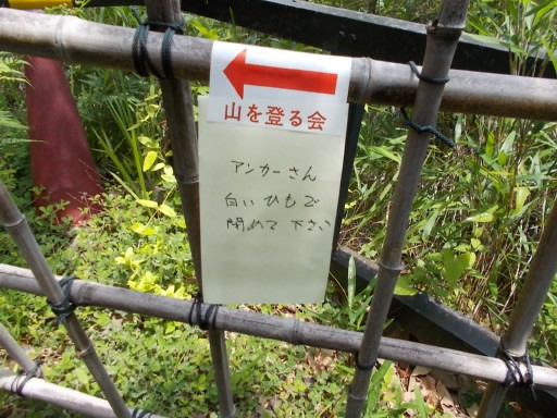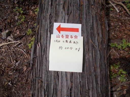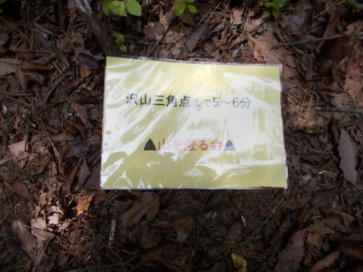 沢山三角点まで、あと5~6分と表示されている。 事前の下見の時に、この場所にこれを置くと決めていたのだろう。 そうでなければ、本番ではこの表示板をここには置けない。