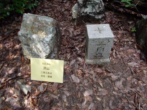 標高515.8m、二等三角点、点名:鷲峰。 「二等」なので大きい。 山頂への到着時刻は13:42。 先程の表示板から21分掛かった。(13:21→13:42) 案内では20分と記してあったので誤差僅かに1分-笑。