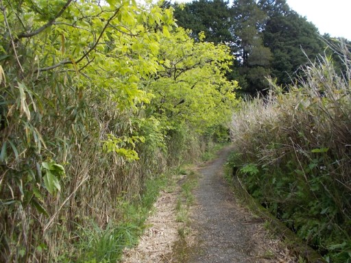 | 若葉が清々しい。 右側、雑草の向こう側には田んぼが広がっている。