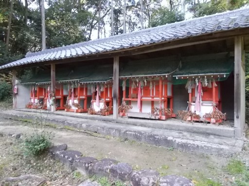 | 左から1.祈雨神社、2.山神社、3.稲荷神社、4.大国主神社、5.風神社、6.道祖神社。