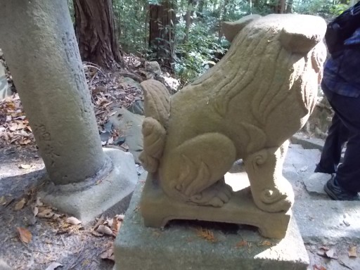 台座とは、石の種類が違うようだ。 狛犬は砂岩かな。