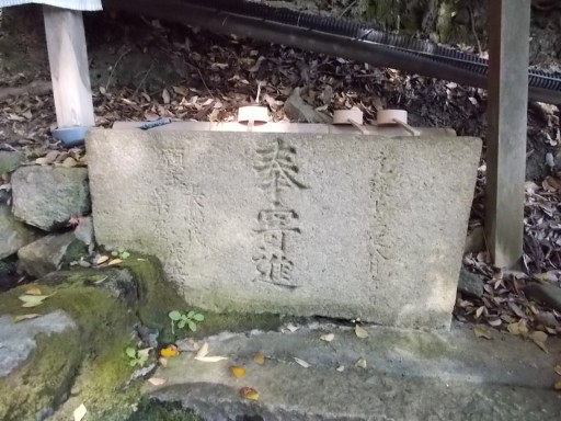 | 歩いて来た道を鞍岡神社の参道まで戻る。 画像は石段途中の手水舎。
