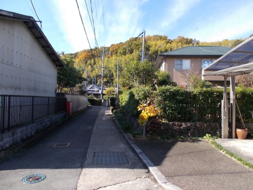 | 丘陵の東側の裾野に沿って南方向へ歩く。 (精華町狛田→僧坊→下狛→谷)