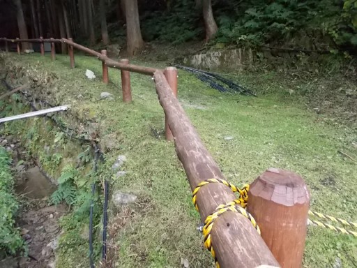 登山道から沢を挟んで左岸を眺める。 こちらは登山道ではないが、転落防止の柵が最近作られていた。