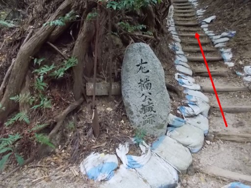 「左 楠公城跡」の道標。 ここから少し登り返す。